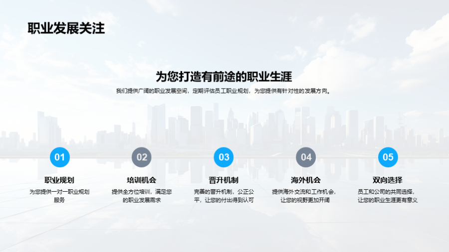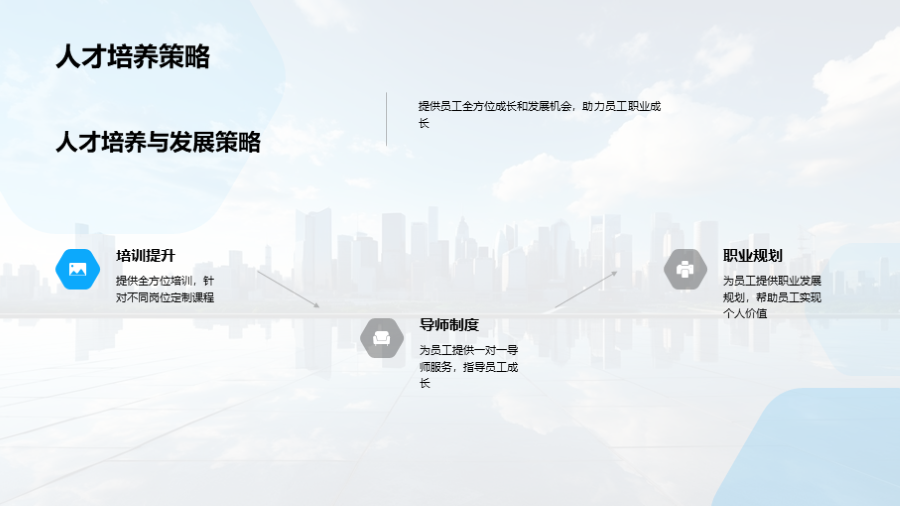 公司的基本情况, 公司的文化和价值观, 公司的发展计划和目标, 公司的人才培养策略, 公司的职业发展路径, 公司提供的培训和发展机会, 公司提供的福利和待遇, 公司对员工职业发展和成长的重视, 公司对良好企业文化和工作环境的打造, 公司的核 文件大小:6.44 MB 页数:24 页 分辨率:16*9 📸 产品预览 — 1秒登录查看完整内容 — 账号登录
