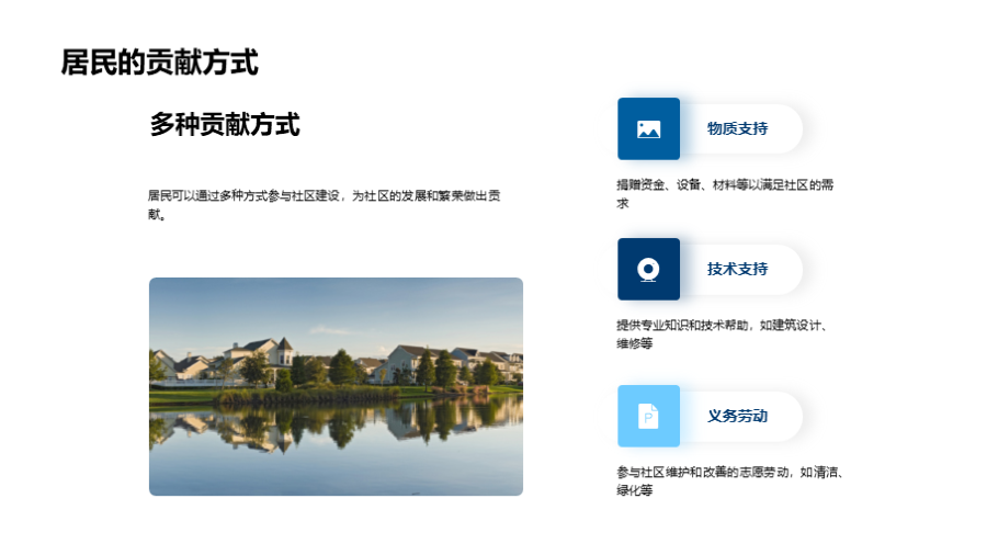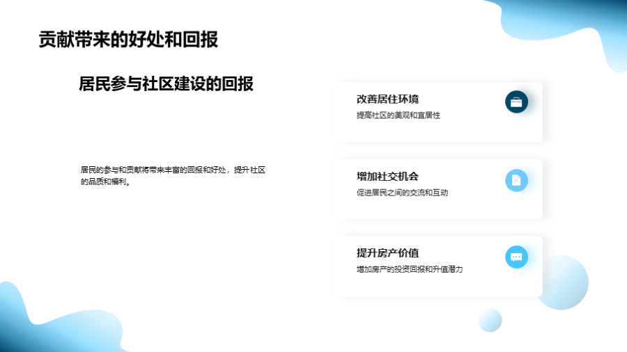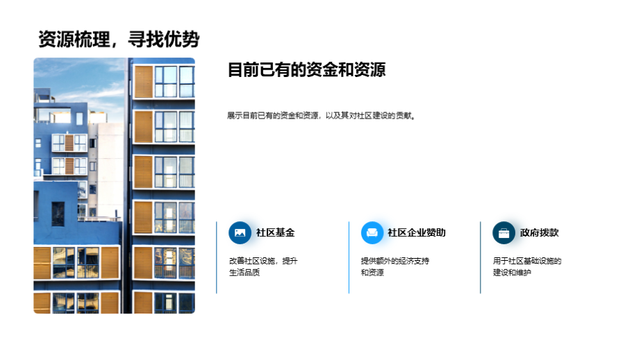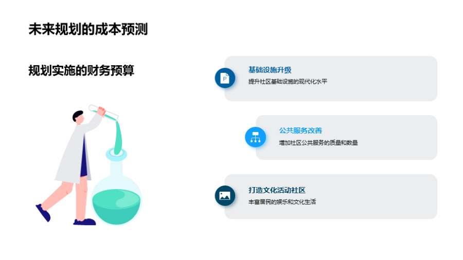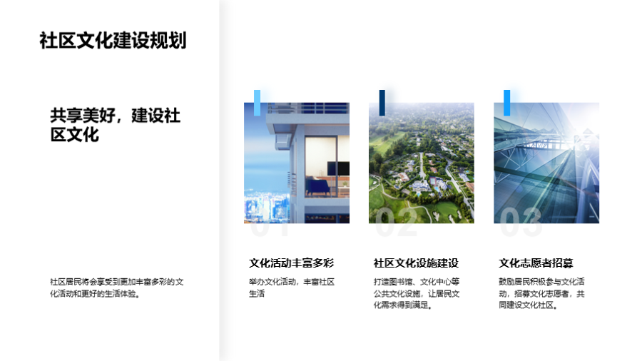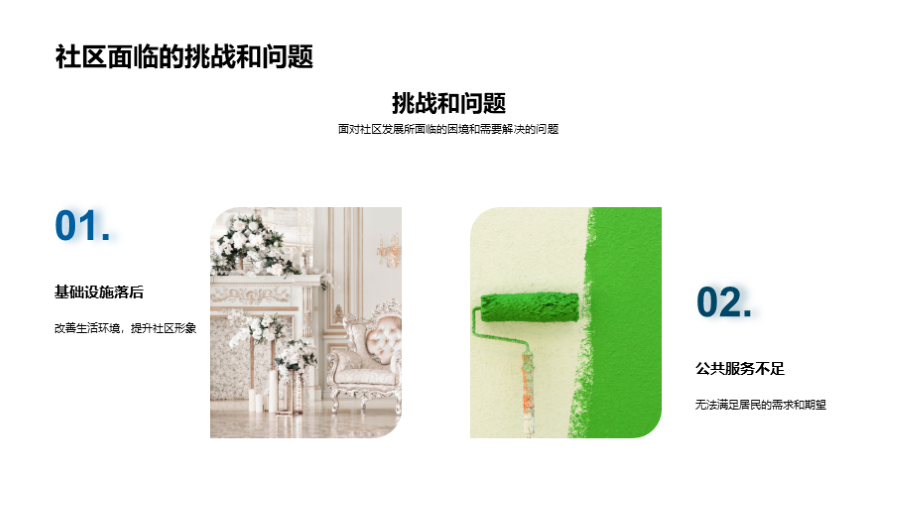 社区的成立与发展, 当前社区的基础设施和服务, 社区居民的基本情况, 社区面临的挑战和问题, 未来的设施升级与扩建, 公共空间和绿地的规划, 公共服务的改善和增加, 居民活动和社区文化建设的规划, 未来规划实施的预计成本, 目前已有的资金和 文件大小:6.77 MB 页数:28 页 分辨率:16*9 📸 产品预览 — 1秒登录查看完整内容 — 账号登录