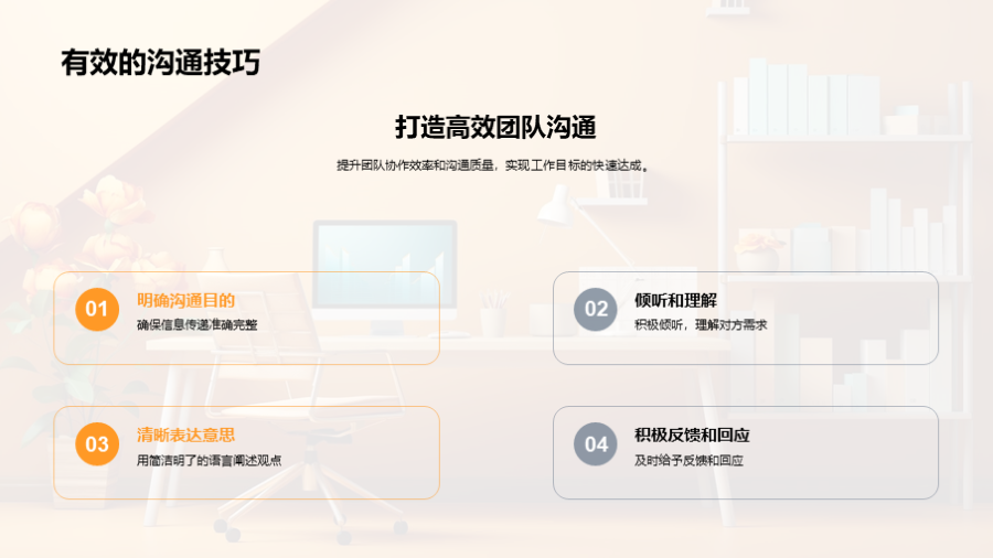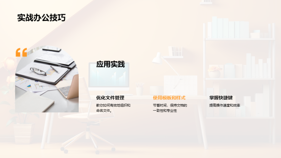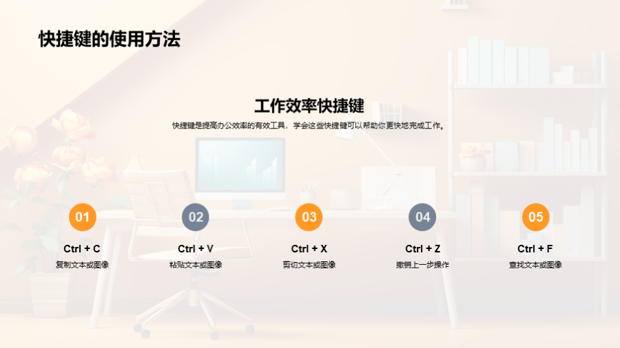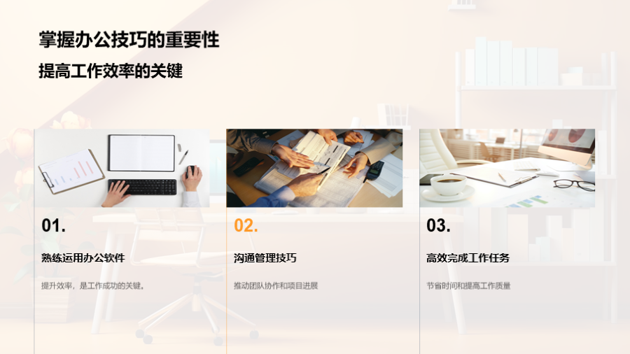 办公软件概述, Word的功能和使用方法, Excel的功能和使用方法, PowerPoint的功能和使用方法, 常见办公软件的比较和选择, 有效的沟通技巧, 如何进行有效的管理, 听说读写技巧的提升, 情绪管理和冲突解决, 快捷键的使用方 文件大小:3.4 MB 页数:26 页 分辨率:16*9 📸 产品预览 — 1秒登录查看完整内容 — 账号登录