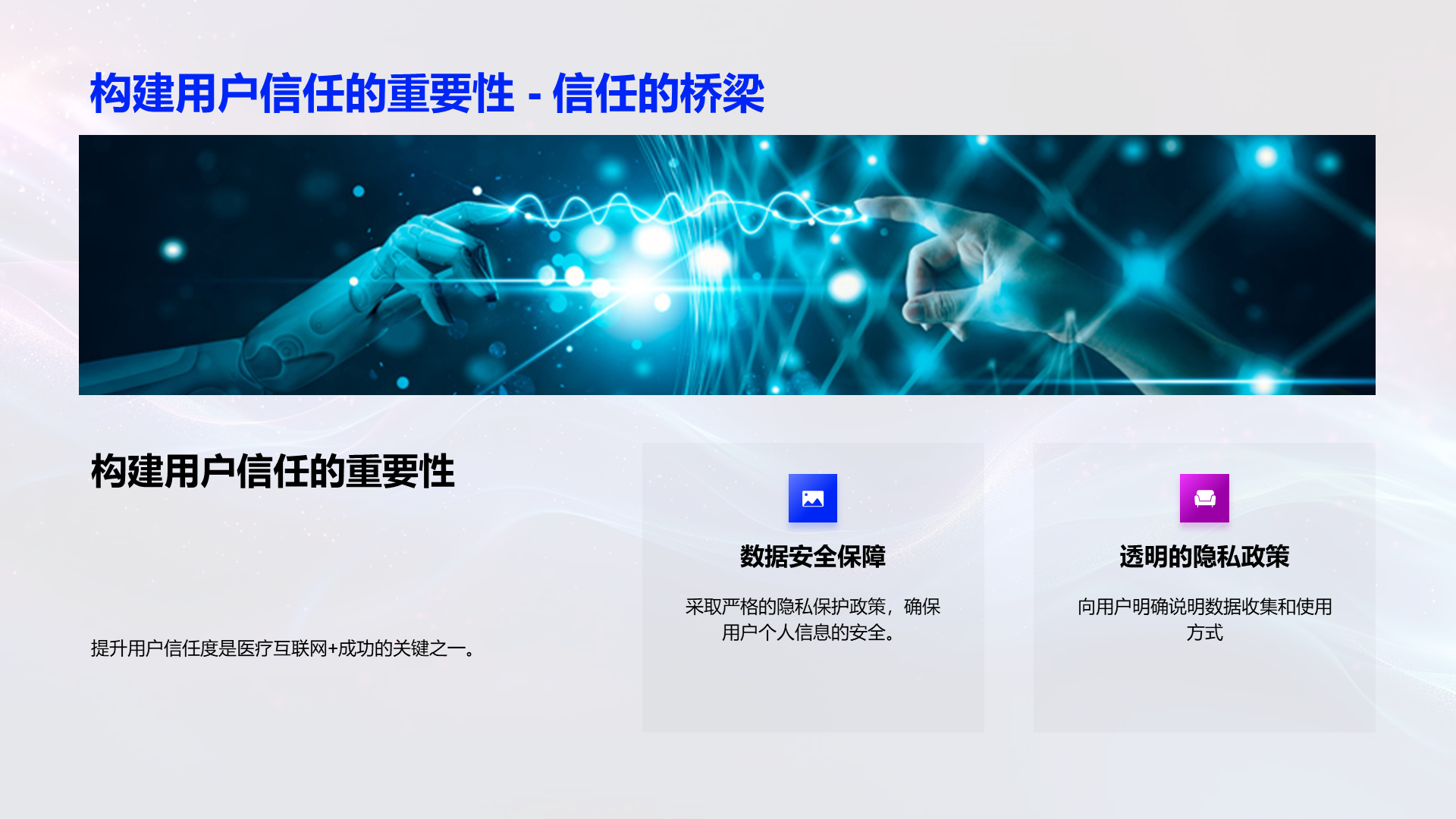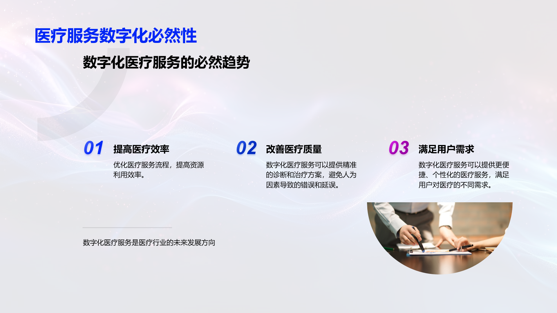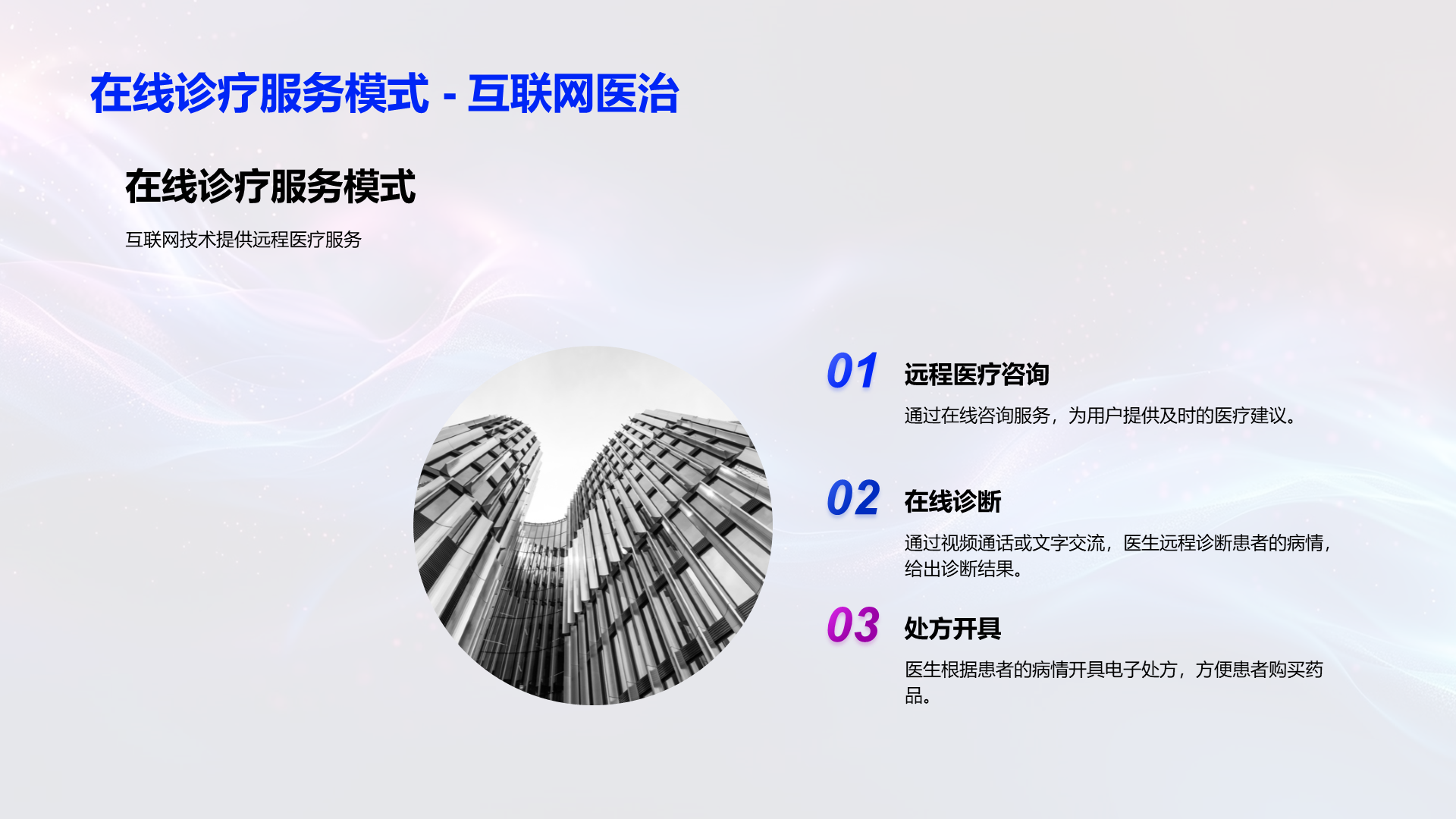互联网+的定义及其在不同行业的影响, 医疗行业的现状与发展趋势, 医疗服务数字化的必然性, 案例分析:互联网+医疗的成功模式, 创新的在线诊疗服务模式, 整合医疗资源的药品配送系统, 用户体验中心设计理念, 构建健康管理生态系统的愿景, 应 文件大小:5.22 MB 页数:28 页 分辨率:16*9 📸 产品预览 — 1秒登录查看完整内容 — 账号登录