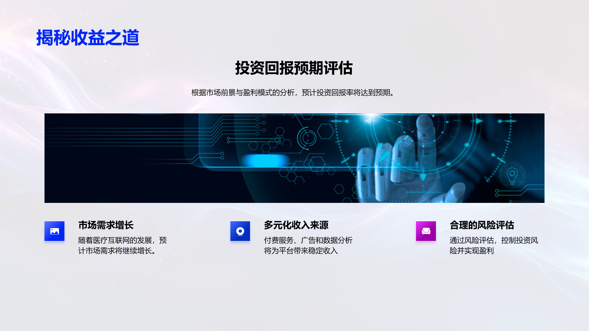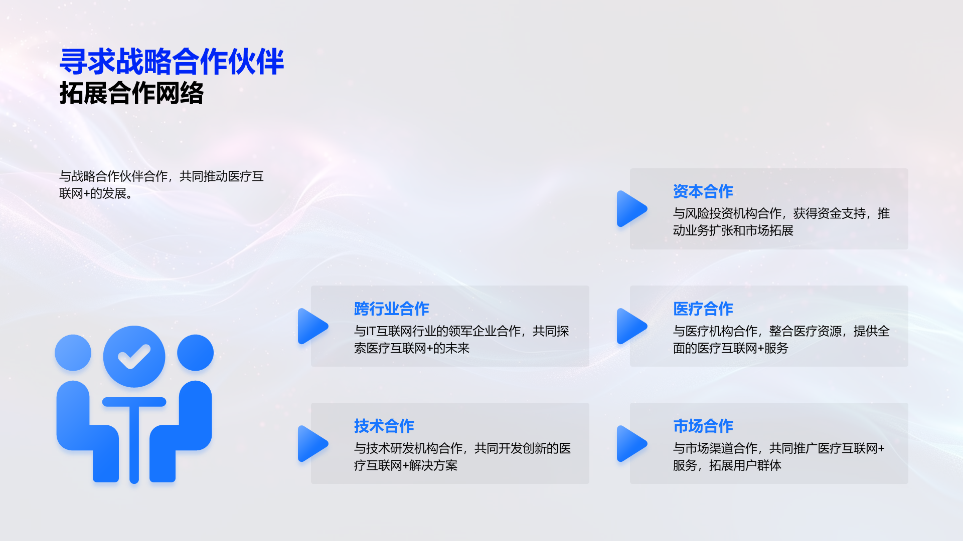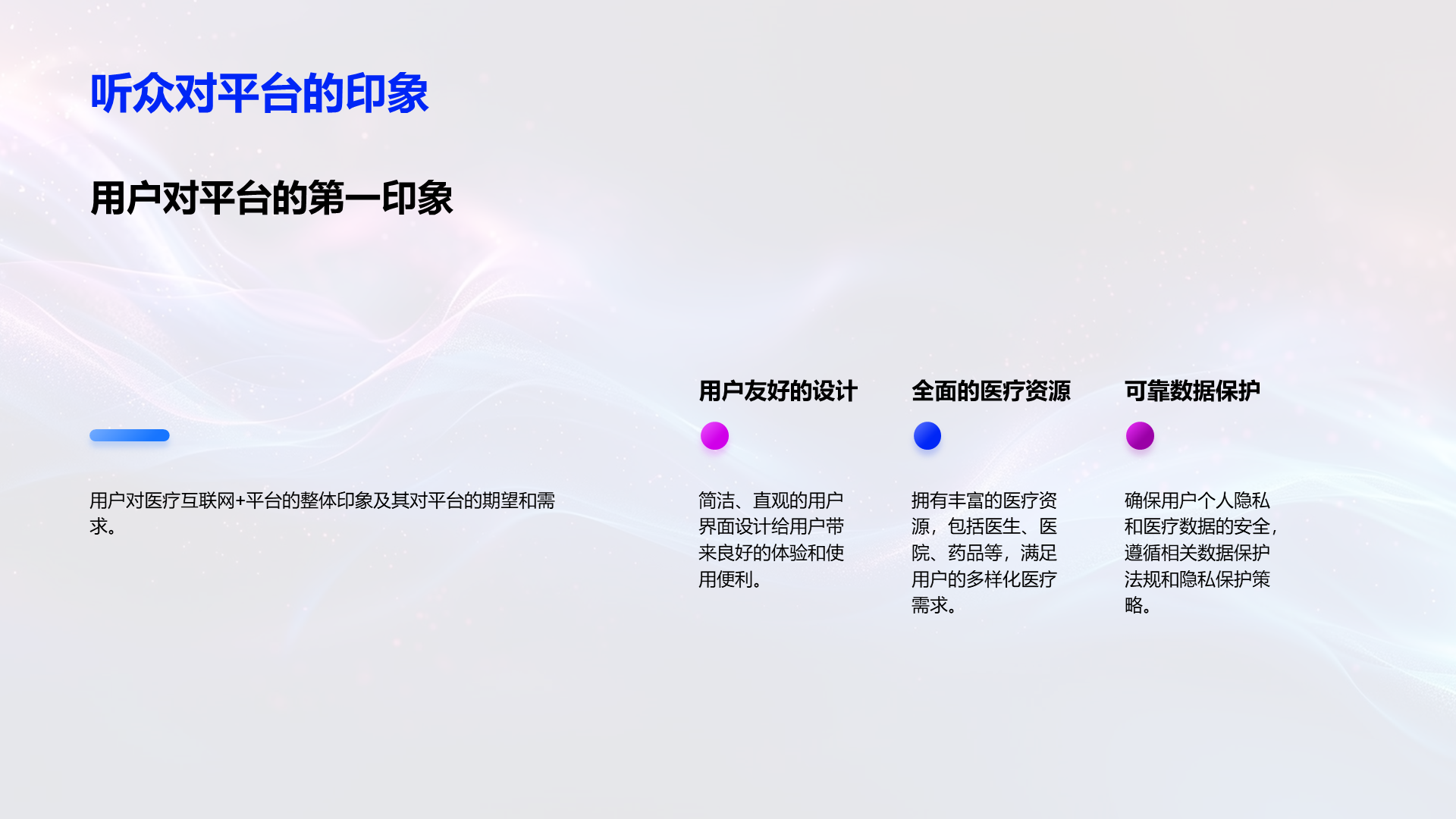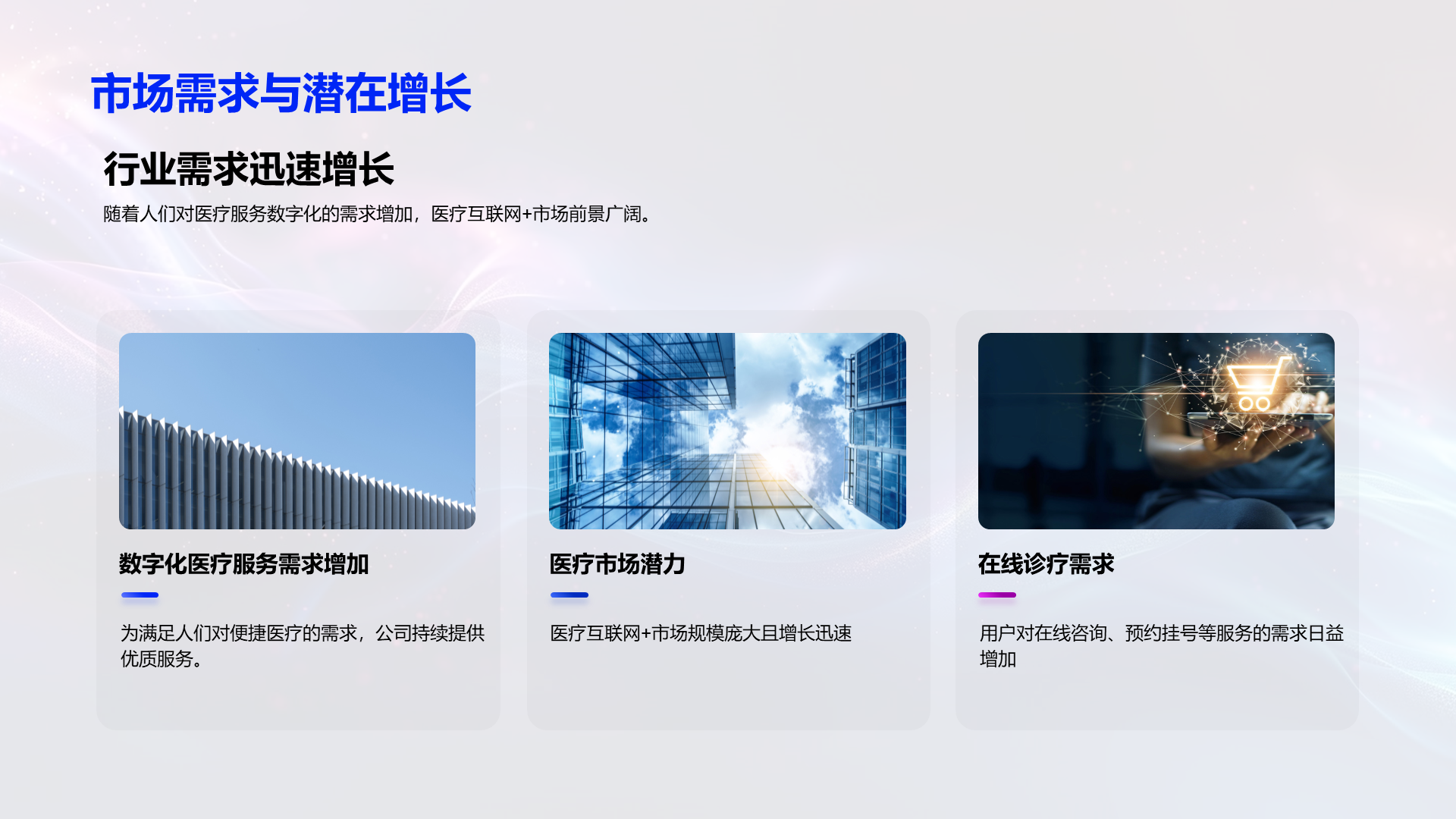 互联网+的定义及其在不同行业的影响, 医疗行业的现状与发展趋势, 医疗服务数字化的必然性, 案例分析:互联网+医疗的成功模式, 创新的在线诊疗服务模式, 整合医疗资源的药品配送系统, 用户体验中心设计理念, 构建健康管理生态系统的愿景, 应 文件大小:5.22 MB 页数:28 页 分辨率:16*9 📸 产品预览 — 1秒登录查看完整内容 — 账号登录