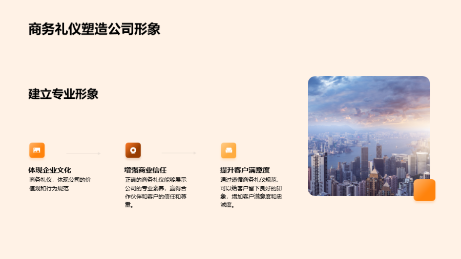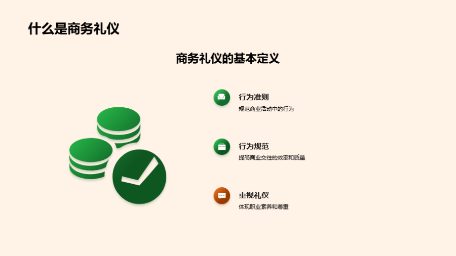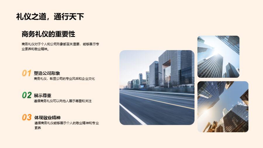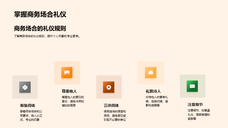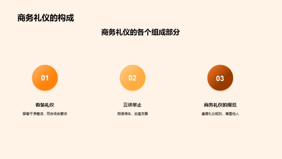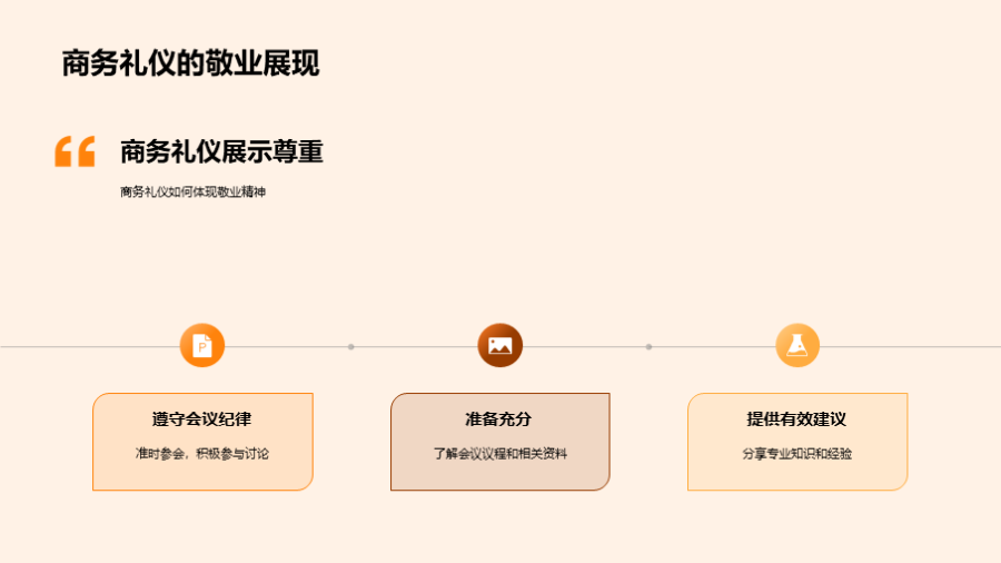 什么是商务礼仪, 为什么商务礼仪重要, 商务礼仪的各个组成部分, 商务会议中的礼仪, 商务宴请的礼仪, 商务交流活动的礼仪, 商务礼仪如何体现公司形象, 礼仪如何影响公司的专业度, 为何说商务礼仪是公司形象的一部分, 如何通过遵循商务礼仪来 文件大小:3.21 MB 页数:23 页 分辨率:16*9 📸 产品预览 — 1秒登录查看完整内容 — 账号登录