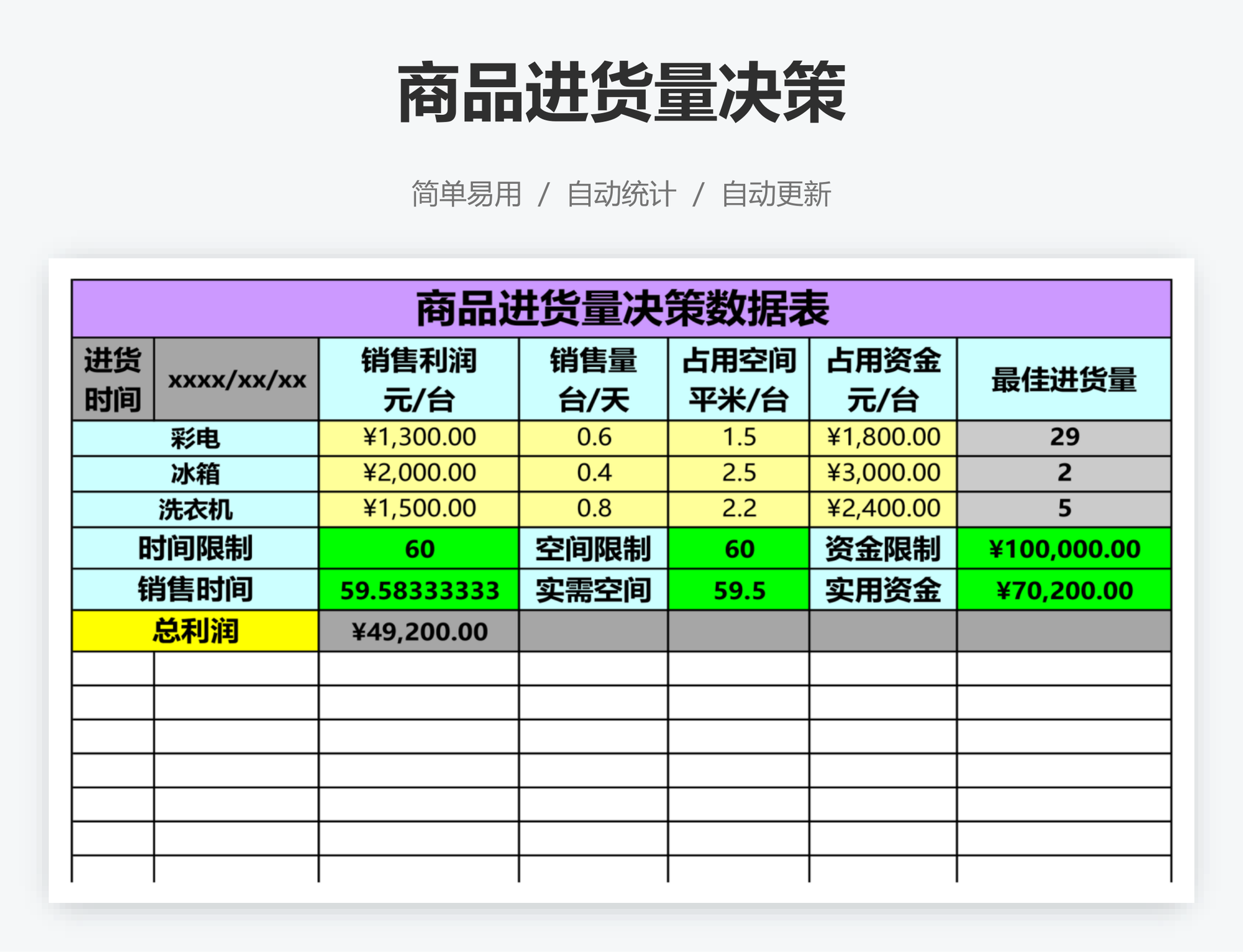 提供关于商品进货量的决策支持,帮助优化库存管理和采购策略。