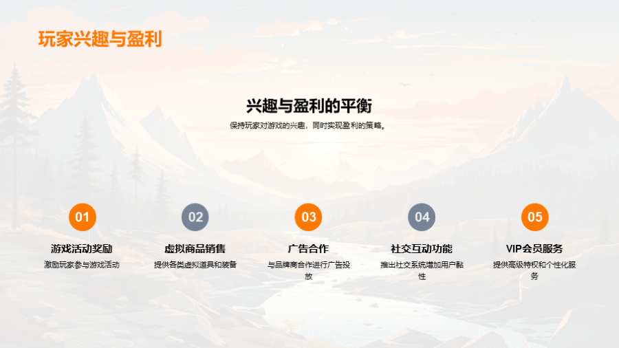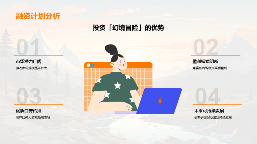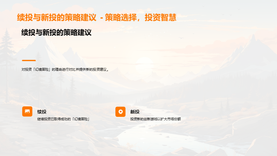「幻境冒险」的开发理念与市场定位, 创新与交互性:给玩家带来新体验, 预期目标与玩家基础:广泛的市场潜力, 当前的财务状况概览, 历年来的盈利情况与成长轨迹, 资源分配:研发、市场与运营的投资, 免费加内购模式的盈利原理, 如何在保持玩家兴 文件大小:5.53 MB 页数:28 页 分辨率:16*9 📸 产品预览 — 1秒登录查看完整内容 — 账号登录
