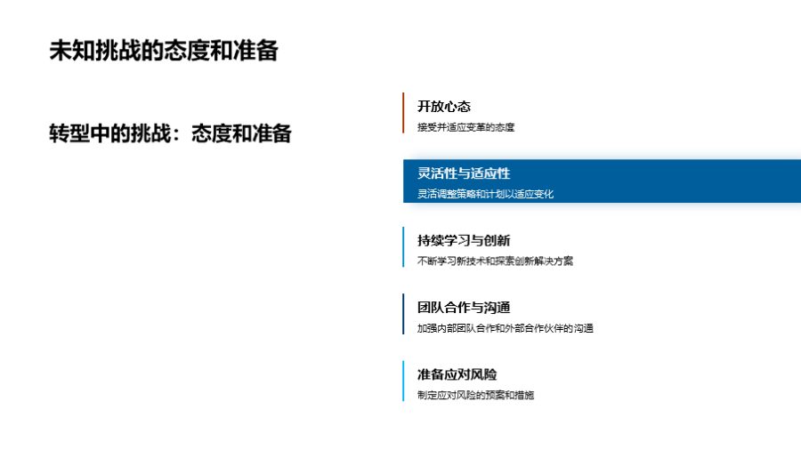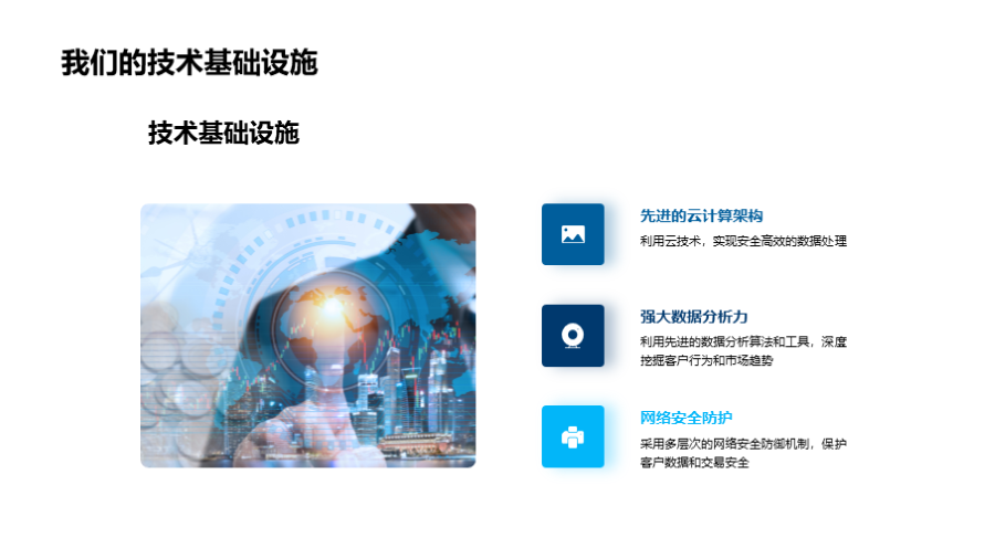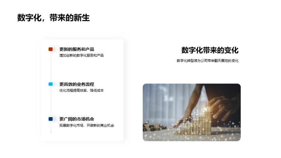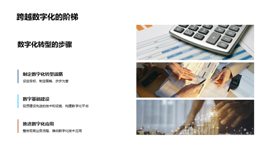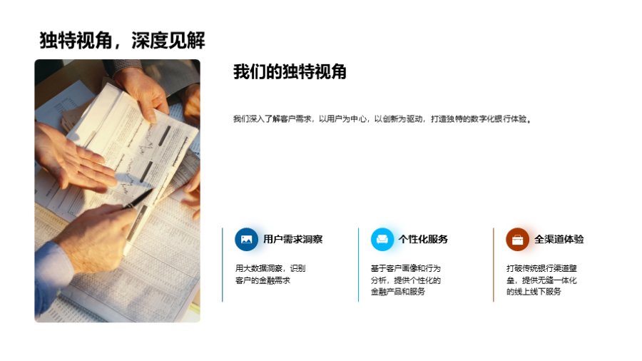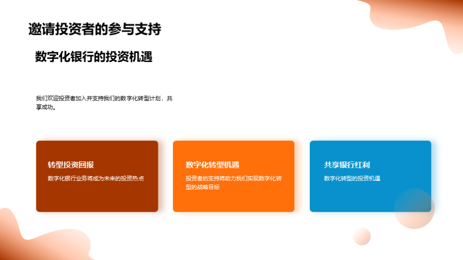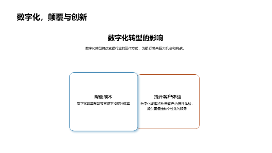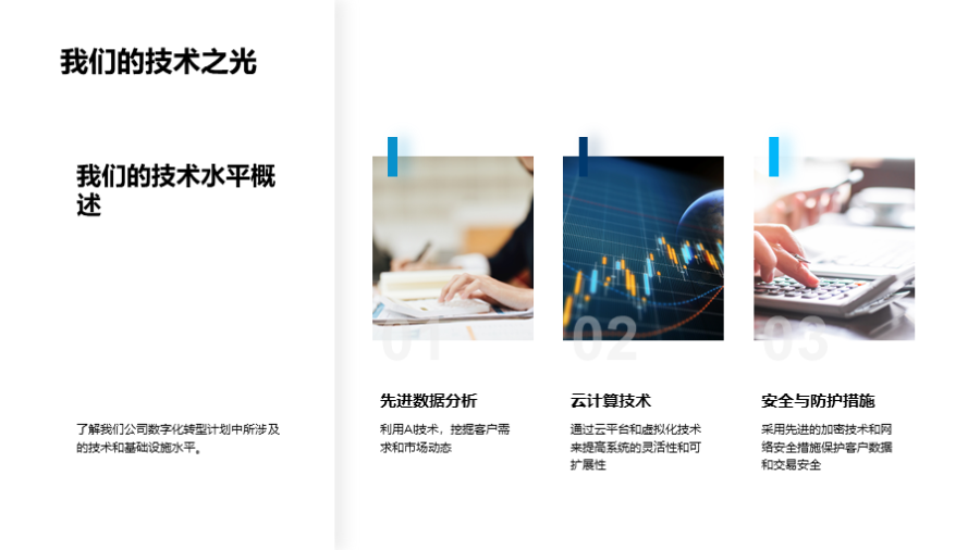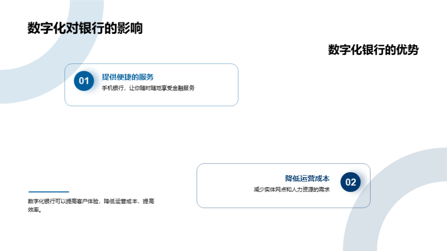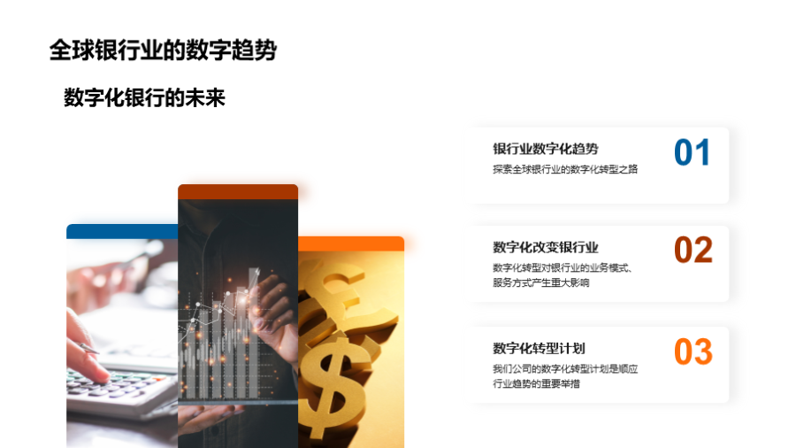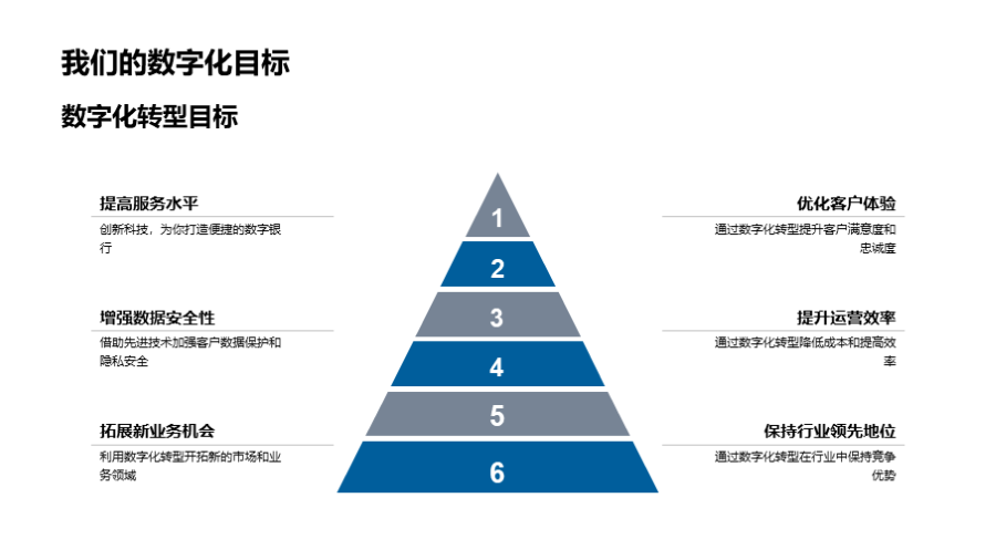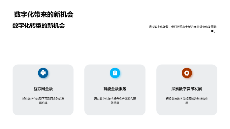 全球银行业数字化的发展趋势, 数字化对银行业的深刻影响, 我们公司的基础设施和技术水平概述, 公司数字化转型的关键步骤, 我们追求的主要数字化目标, 我们对数字化转型的独特视角, 预期的数字化转型带来的影响, 数字化转型将为我们打开的新机会 文件大小:3.81 MB 页数:24 页 分辨率:16*9 📸 产品预览 — 1秒登录查看完整内容 — 账号登录