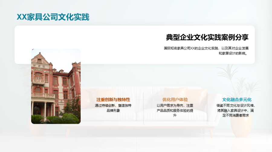 企业文化的定义与发展, 企业文化的价值与作用, 企业文化与企业的核心竞争力, 企业文化与家居设计的紧密关系, 企业文化在家居设计中的体现, 如何在家居设计中传达企业文化, 国际知名家具公司XX的企业文化实践, 国内知名家具公司YY的企业文化 文件大小:5.53 MB 页数:23 页 分辨率:16*9 📸 产品预览 — 1秒登录查看完整内容 — 账号登录