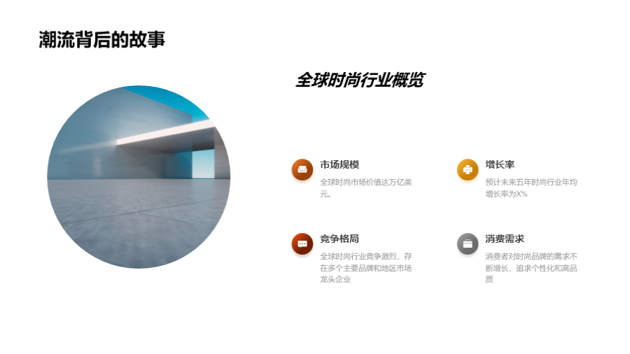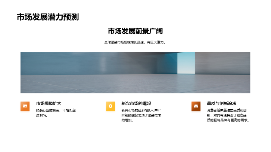 介绍全球服装行业的整体概况, 阐述20XX年的市场趋势和未来的市场预测, 分享我们公司的起源和发展历程, 明确我们的品牌定位, 阐述我们品牌的独特性, 分享我们的成功案例和客户反馈, 深度分析消费者的需求和期望, 展示我们品牌满足市场需求的 文件大小:4.69 MB 页数:28 页 分辨率:16*9 📸 产品预览 — 1秒登录查看完整内容 — 账号登录