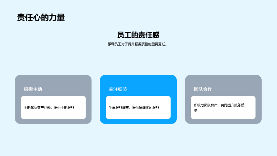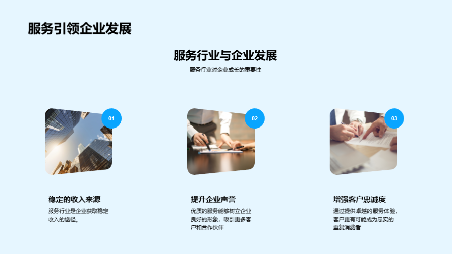 解释服务行业的基本概念, 阐述服务行业对于社会经济的重要性, 分析服务行业对于企业发展的影响, 详细介绍公司的服务理念, 解读公司的服务行为准则, 讨论服务理念和行为准则对于员工行为的指导作用, 解析以客户为中心的服务理念, 通过真实案例展 文件大小:4.91 MB 页数:28 页 分辨率:16*9 📸 产品预览 — 1秒登录查看完整内容 — 账号登录