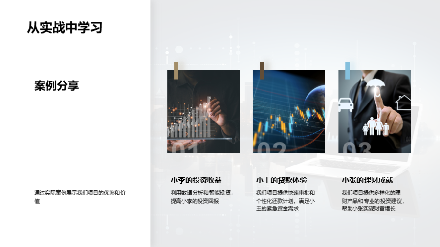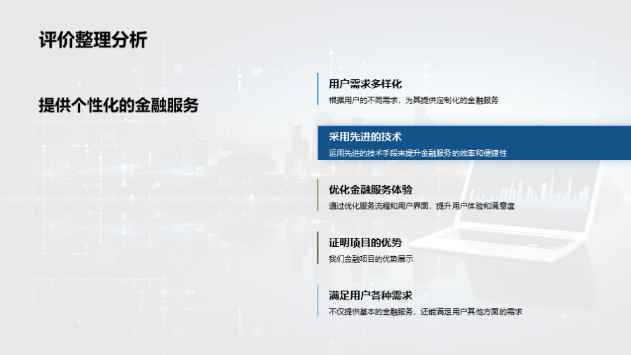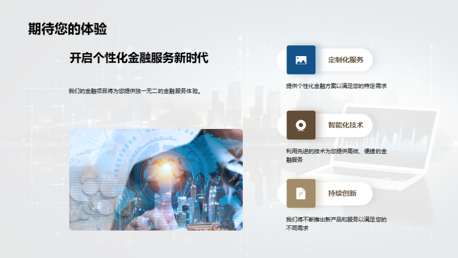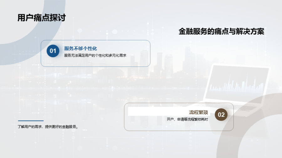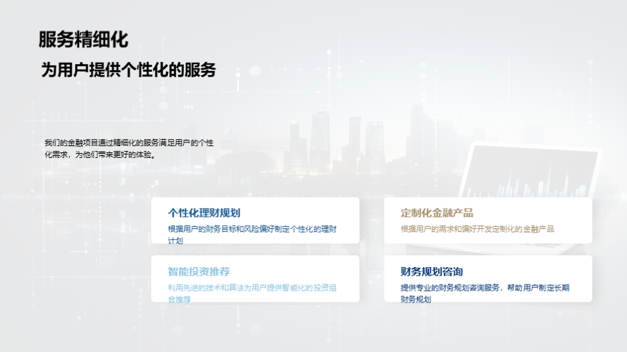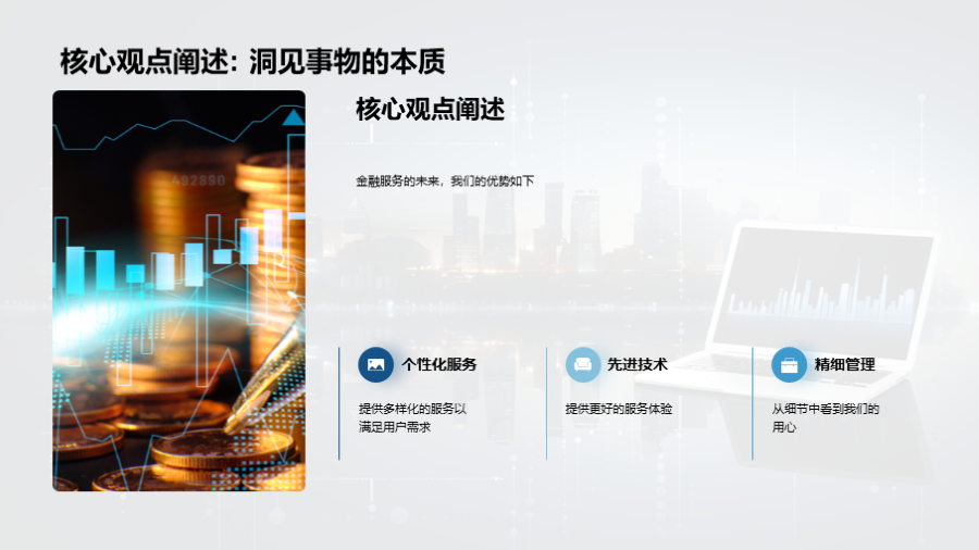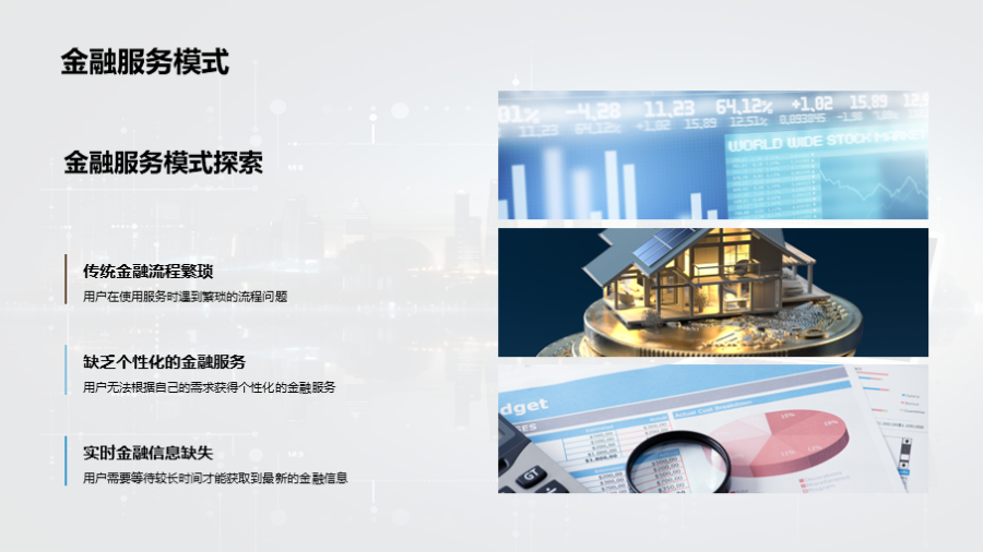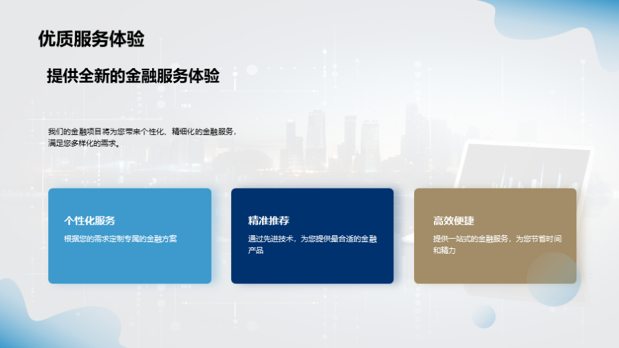 现有的金融服务模式和产品, 用户的需求和痛点, 如何满足用户需求的金融项目介绍, 我们的金融项目提供了更加精细化和个性化的服务, 我们的金融项目采用了先进的技术, 我们的金融项目为你提供更好的金融服务体验, 我们项目的核心观点和优势, 我们 文件大小:3.86 MB 页数:28 页 分辨率:16*9 📸 产品预览 — 1秒登录查看完整内容 — 账号登录