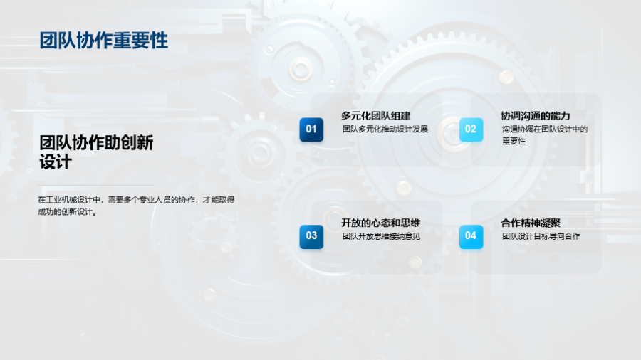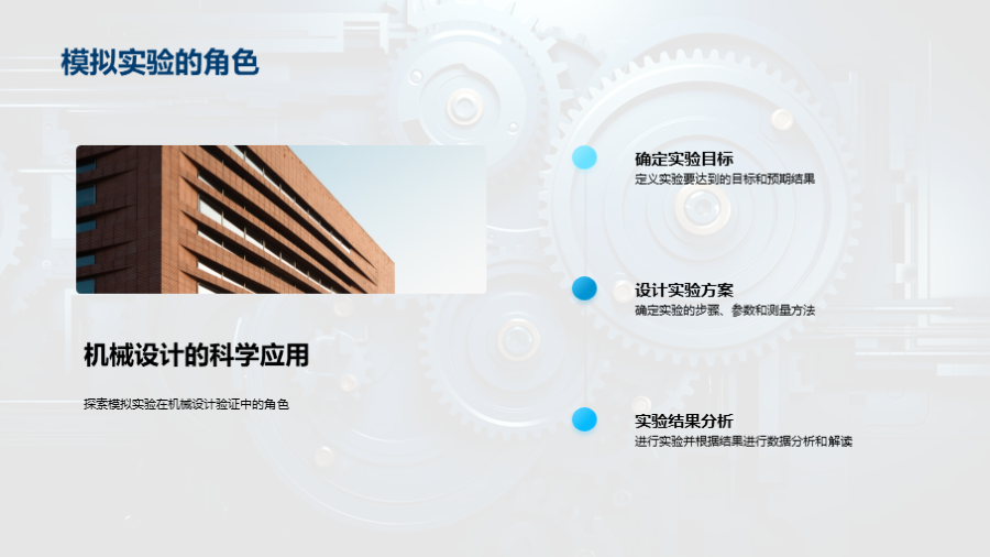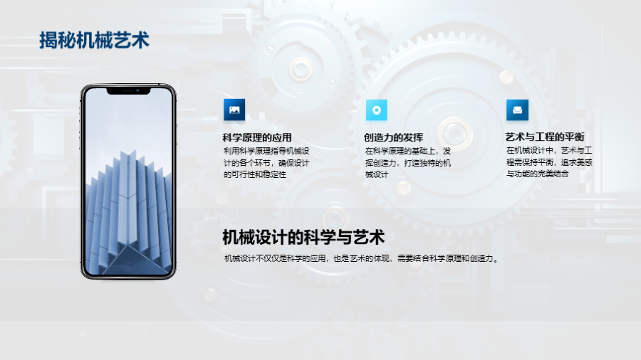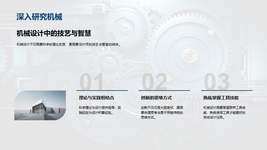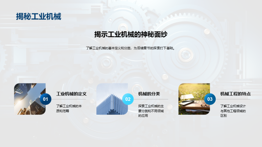 机械的基本定义, 工业机械的主要分类, 工业机械的作用和影响, 工业机械设计的基本原则, 工业机械制造过程的概览, 生产流程和材料选择对机械制造的影响, 如何优化生产流程,提高机械制造的效率和质量, 实际需求驱动的设计思路, 科学计算在机械 文件大小:6.46 MB 页数:28 页 分辨率:16*9 📸 产品预览 — 1秒登录查看完整内容 — 账号登录