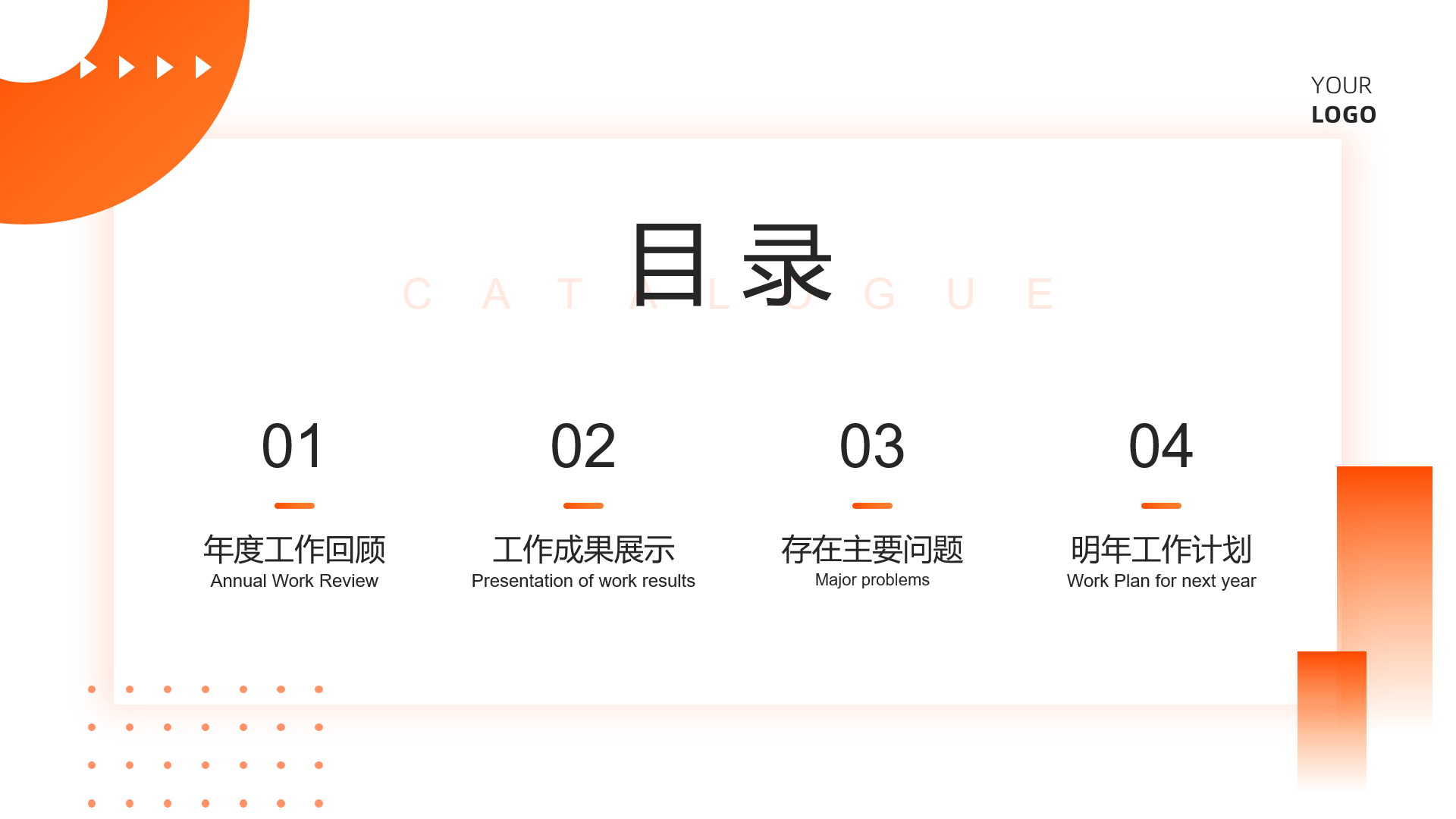 橙色商务风简约总结汇报PPT模板