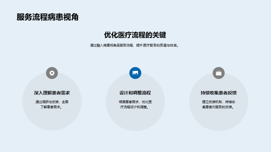 解释病患视角的概念, 阐述以病患视角为基础的医疗流程优化的重要性, 分享全球范围内的病患视角医疗案例, 患者满意度的提升, 服务质量的提高, 效率提升与成本降低, 医疗机构的口碑与信誉提升, 深入理解患者需求, 根据需求设计和调整流程, 持 文件大小:3.65 MB 页数:25 页 分辨率:16*9 📸 产品预览 — 1秒登录查看完整内容 — 账号登录