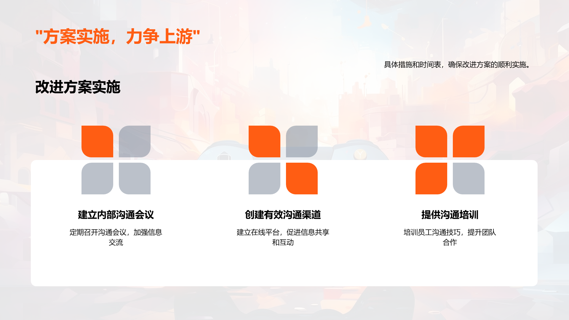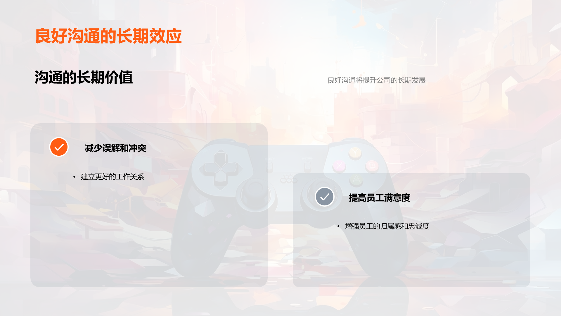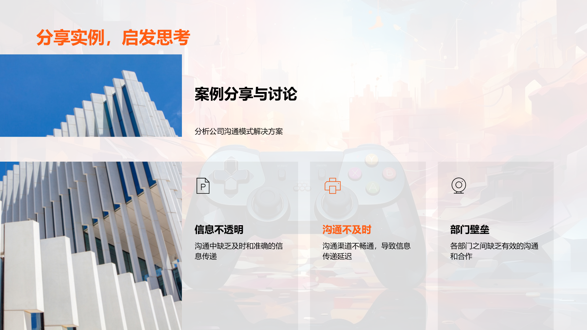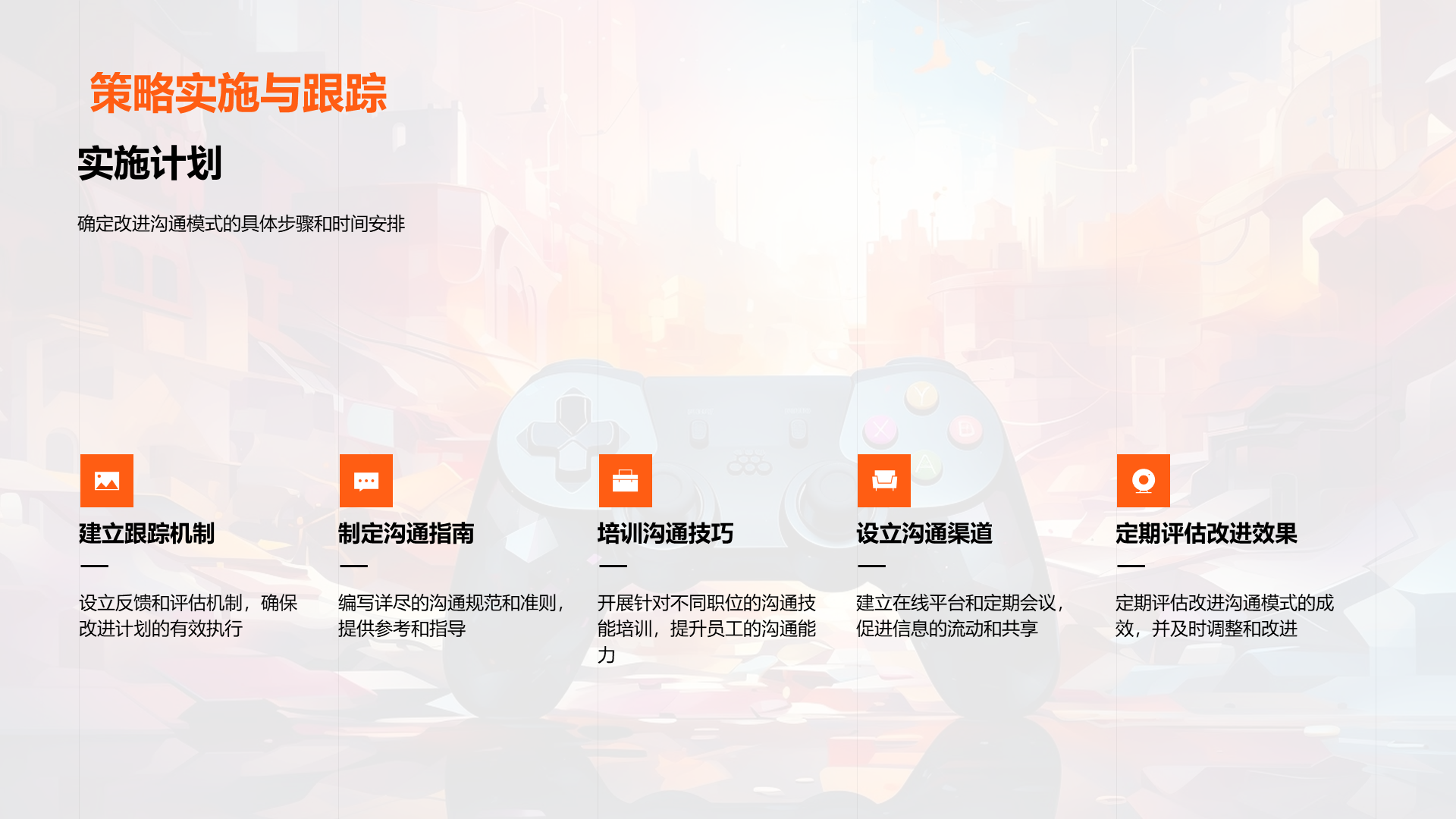 理解游戏开发的基本流程, 阐述内部沟通在游戏开发过程中的重要性, 分析公司现有的沟通模式, 识别出现有模式中的问题,如信息不透明,沟通不及时等, 说明良好沟通如何提高工作效率, 讨论良好沟通对公司发展的贡献, 提议定期的内部沟通会议, 建议 文件大小:4.24 MB 页数:28 页 分辨率:16*9 📸 产品预览 — 1秒登录查看完整内容 — 账号登录
