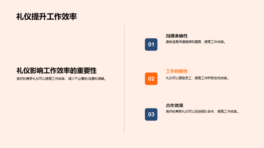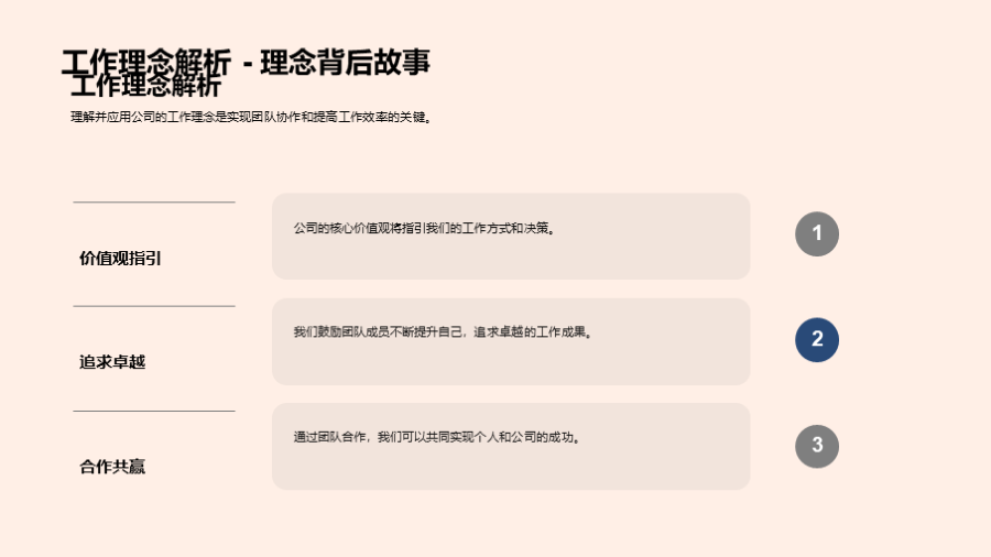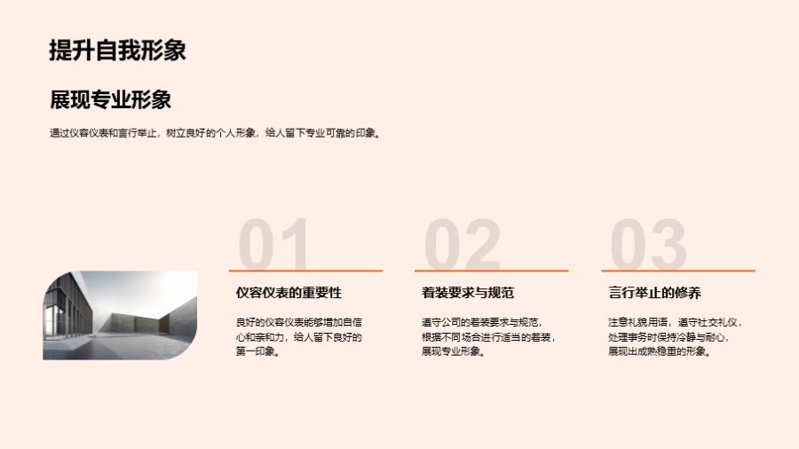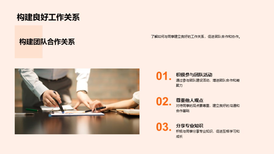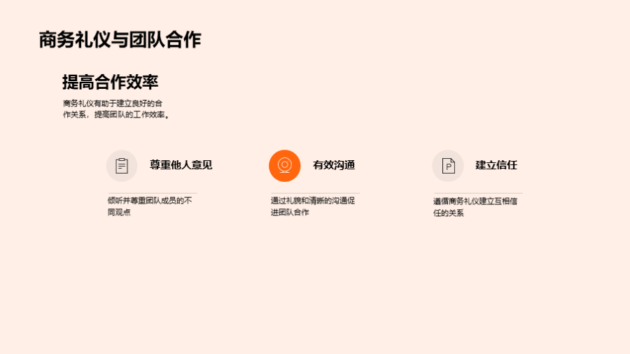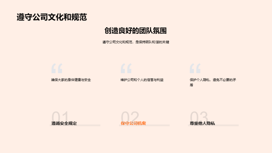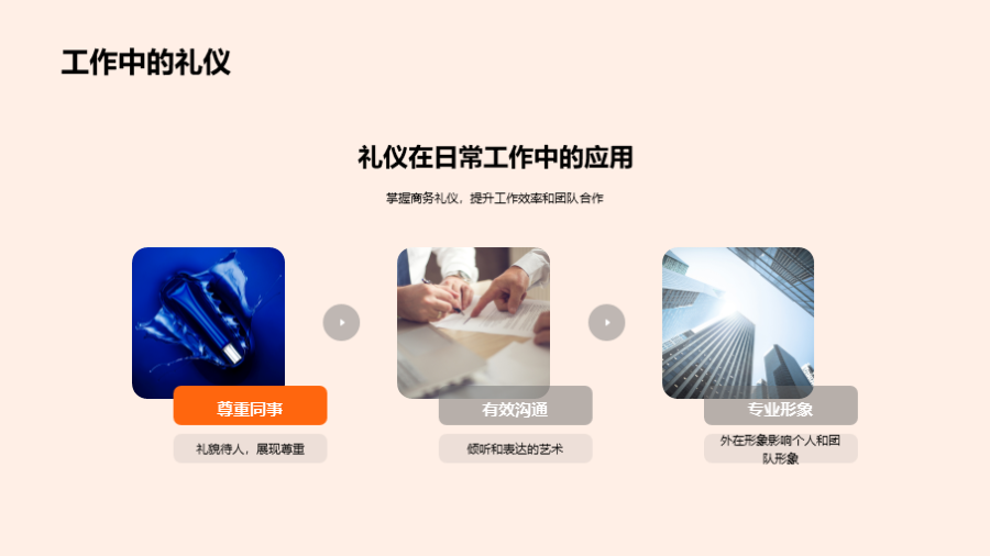 公司的成立和发展, 公司的核心价值观和文化, 我们的工作理念, 工作流程的设计和执行, 有效沟通的技巧和规则, 团队成员的角色和责任, 通过专业知识展现你的能力, 积极的态度对于团队的重要性, 如何尊重同事和他们的工作, 商务礼仪如何影响团 文件大小:4.41 MB 页数:28 页 分辨率:16*9 📸 产品预览 — 1秒登录查看完整内容 — 账号登录
