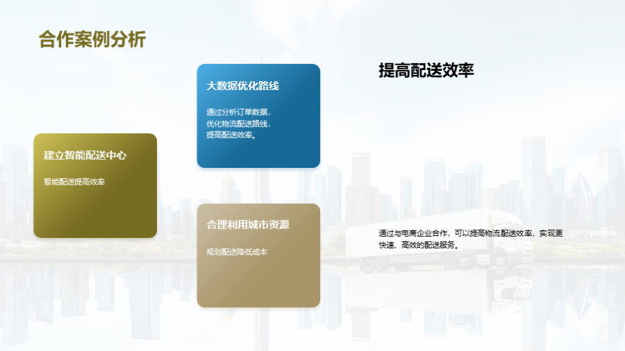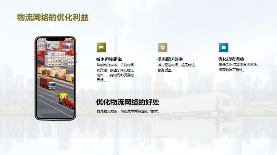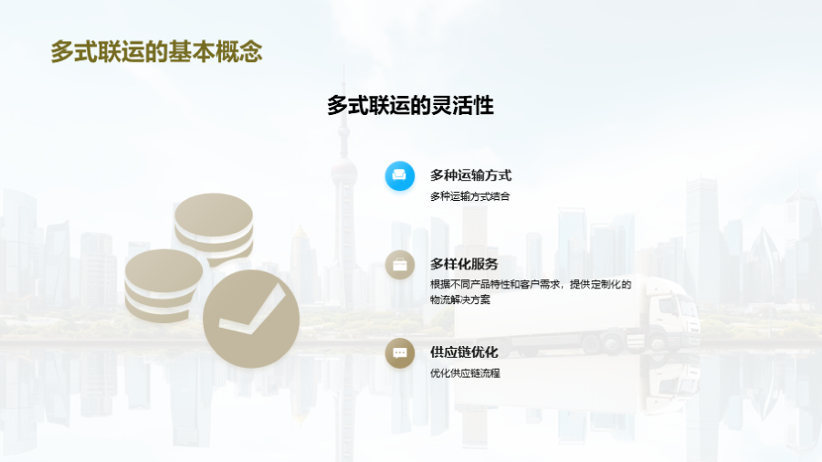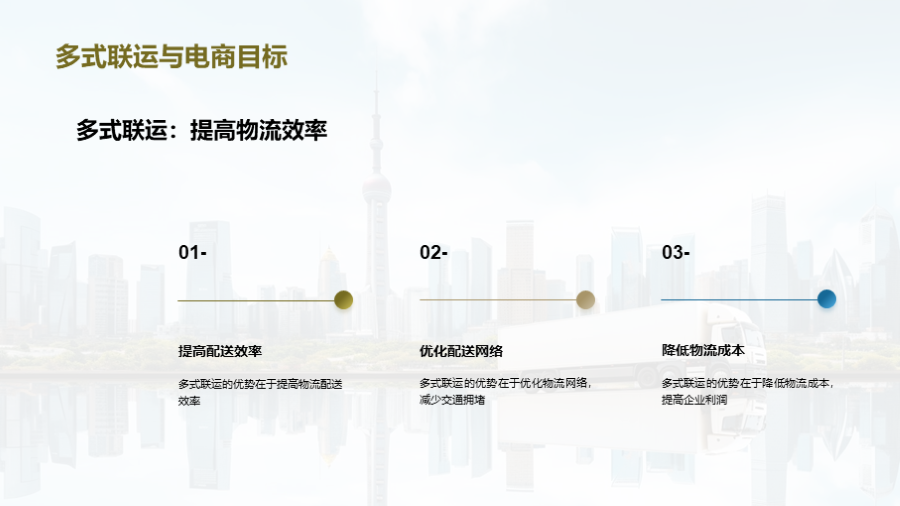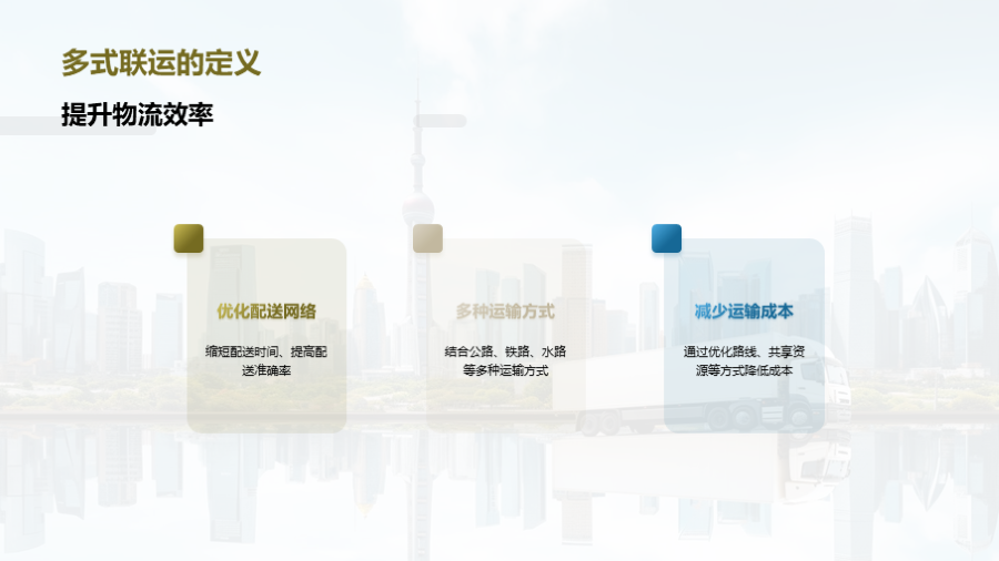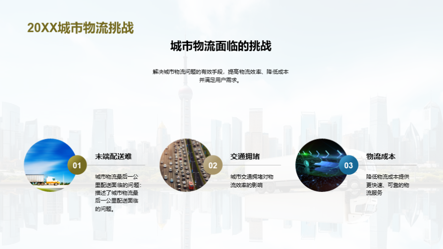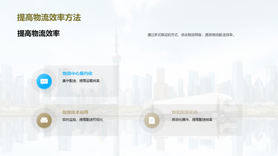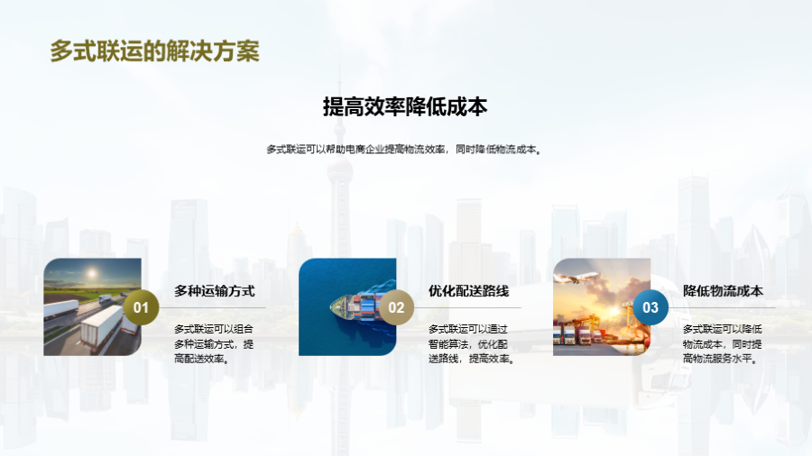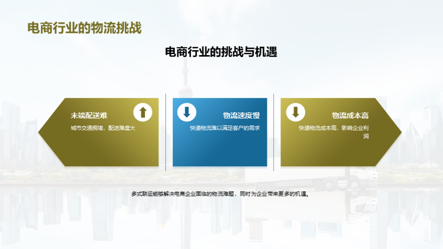 电子商务的快速发展, 城市物流面临更高的要求和更大的挑战, 多式联运作为解决城市物流问题的有效手段, 优化物流网络,提高物流配送效率, 城市物流面临末端配送难、交通拥堵等挑战, 降低物流成本,提供更快速、可靠的物流服务, 解决城市物流问题的 文件大小:3.95 MB 页数:19 页 分辨率:16*9 📸 产品预览 — 1秒登录查看完整内容 — 账号登录