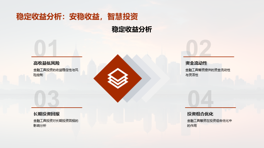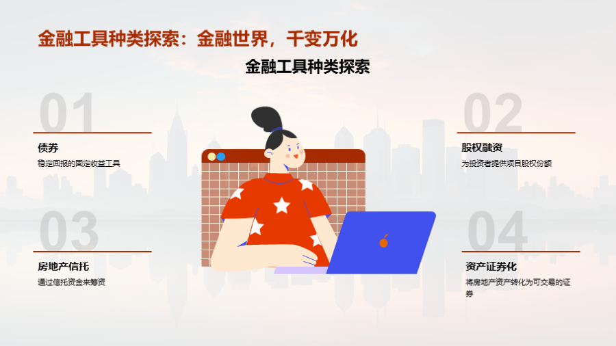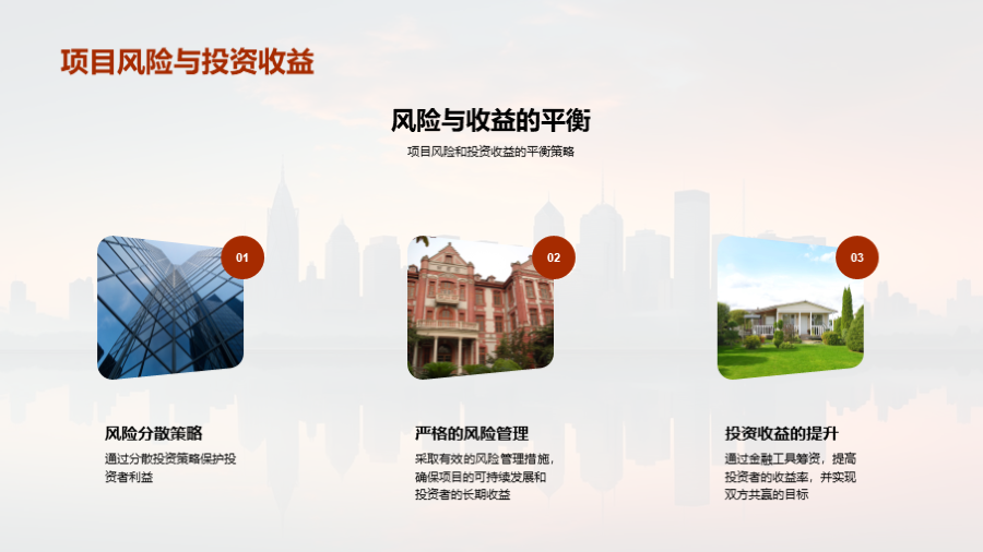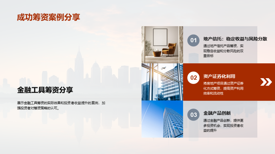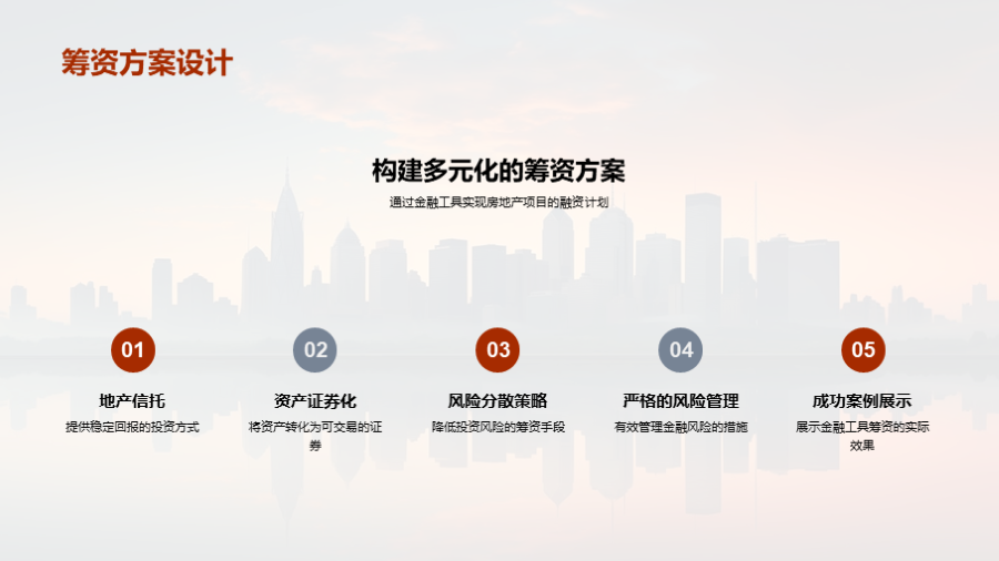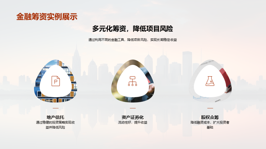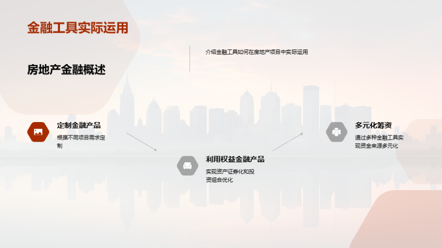 定义及意义, 金融工具种类与用途, 房地产金融市场发展趋势分析, 筹资方案设计:地产信托、资产证券化, 金融产品特性分析:稳定收益与低风险, 风险分散策略及严格的风险管理, 运用金融工具筹资的实例展示, 项目风险降低与投资者收益提升, 构建 文件大小:5.83 MB 页数:24 页 分辨率:16*9 📸 产品预览 — 1秒登录查看完整内容 — 账号登录