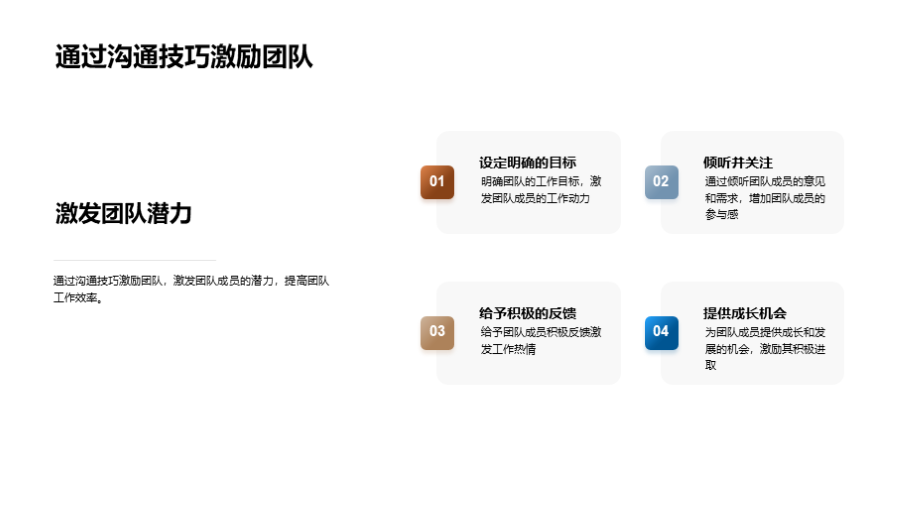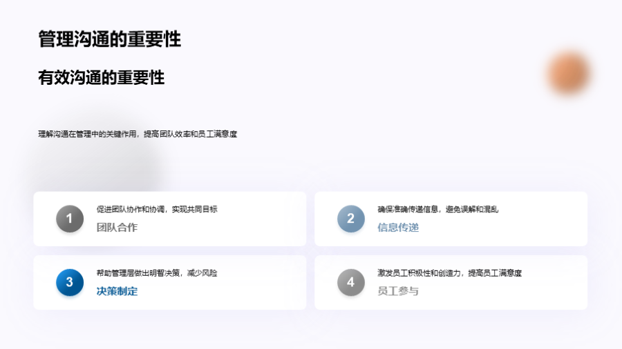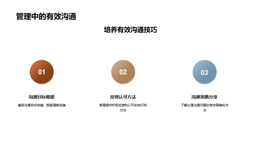 定义管理沟通的含义, 探讨管理沟通对于团队和企业的重要性, 介绍有效沟通在管理中的关键作用, 明确沟通的目标和期望, 提供反馈和认可的方式, 分享解决沟通问题的策略, 通过案例分析,展示有效沟通如何解决困难和问题, 介绍如何通过沟通技巧激励 文件大小:1.93 MB 页数:23 页 分辨率:16*9 📸 产品预览 — 1秒登录查看完整内容 — 账号登录