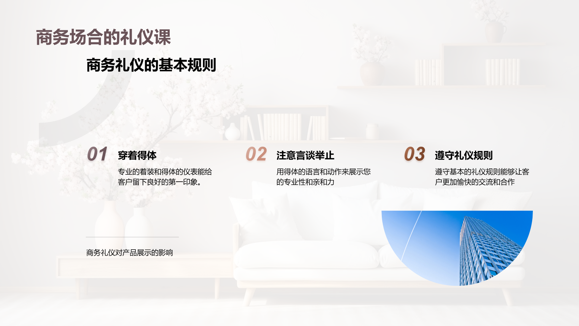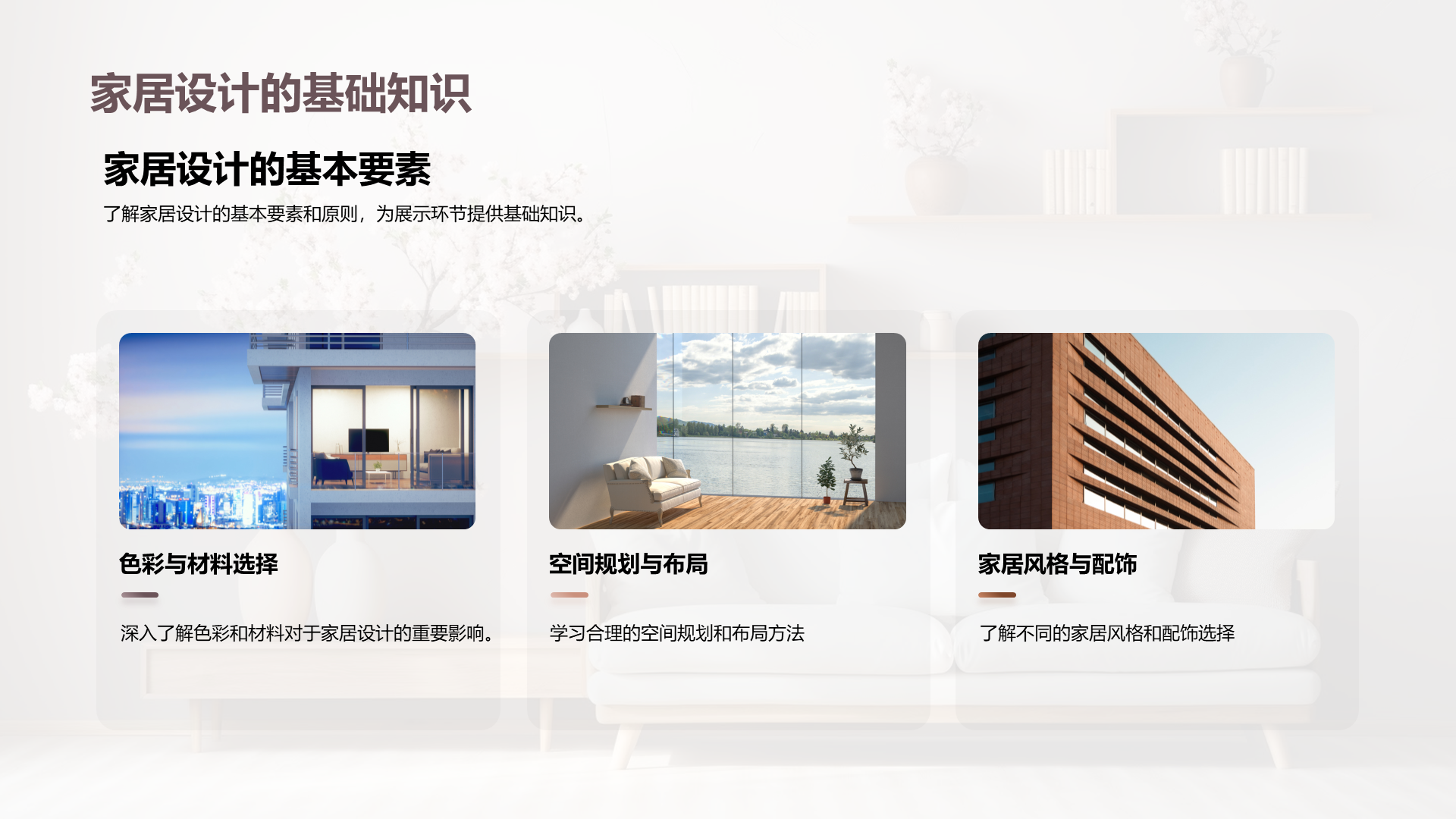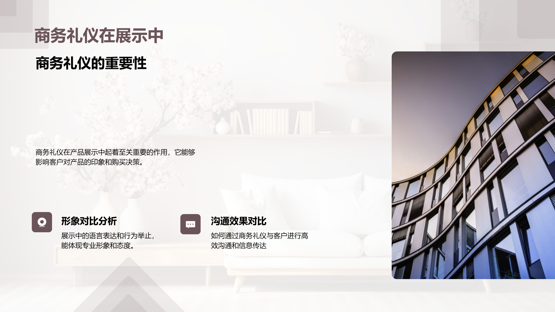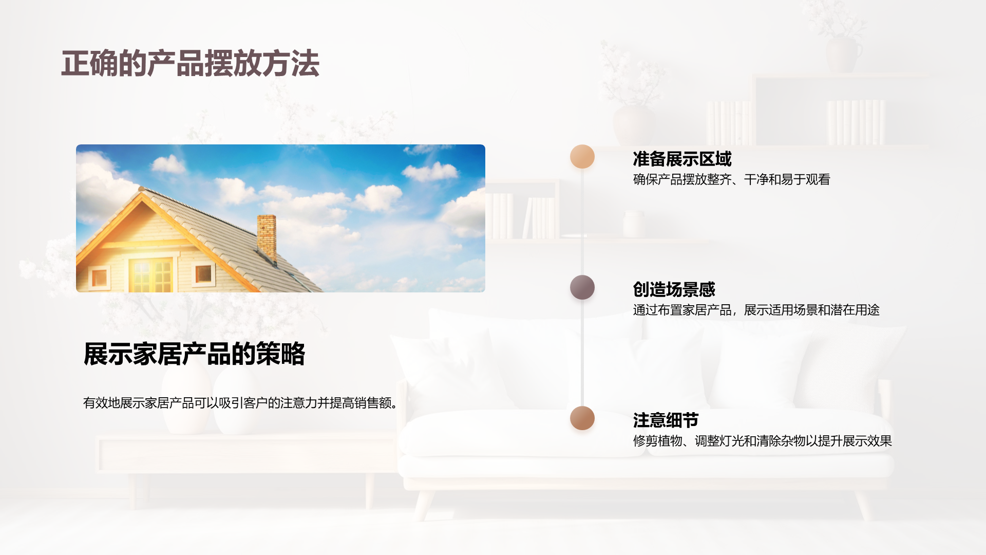 理解家居设计的基本概念, 家居设计的元素和原则, 了解如何进行有效的家居展示, 商务礼仪的基本规则, 商务礼仪在产品展示中的作用, 使用商务礼仪吸引客户,提升产品的吸引力, 注重产品的摆放和灯光效果, 使用恰当的语言描述产品的特点和优点, 文件大小:6.17 MB 页数:23 页 分辨率:16*9 📸 产品预览 — 1秒登录查看完整内容 — 账号登录