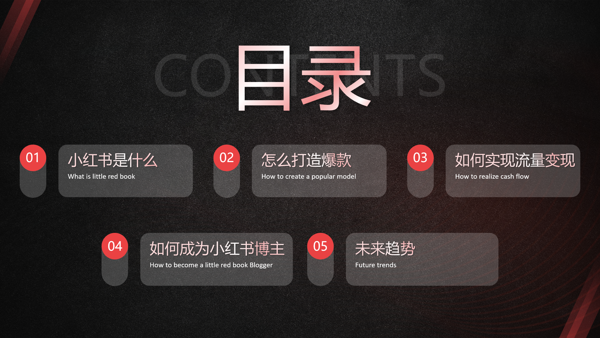 红色创意炫酷小红书运营培训PPT模板