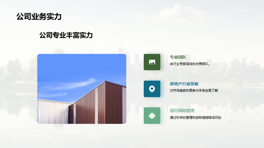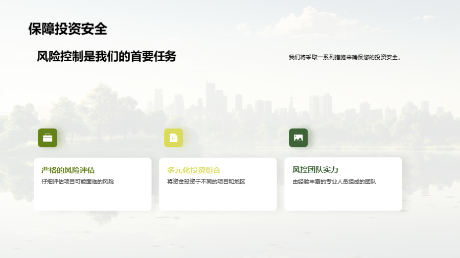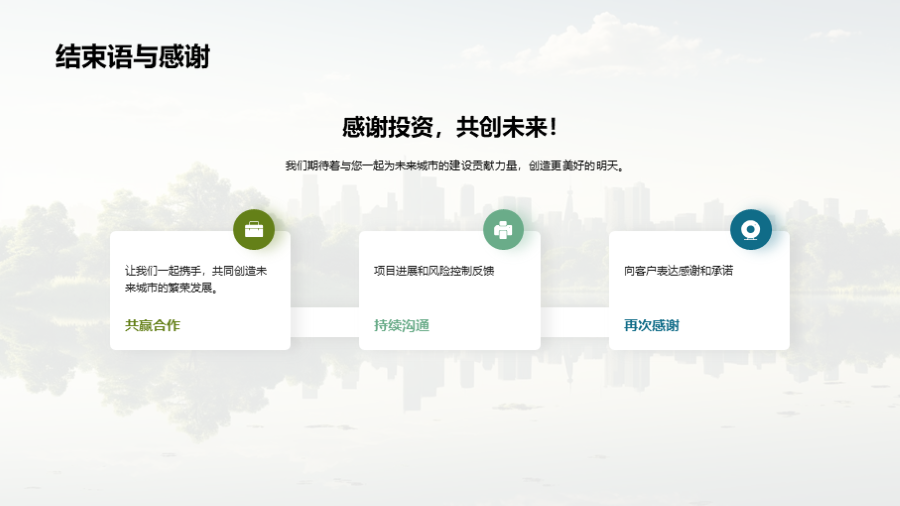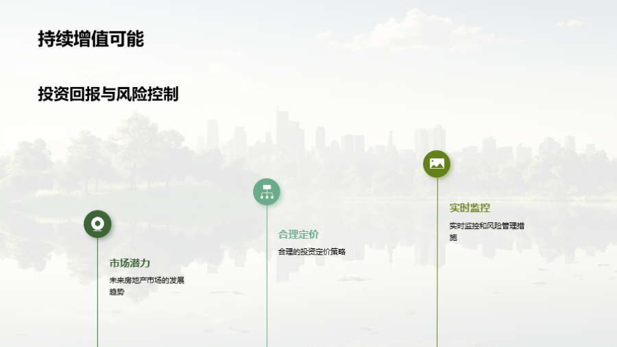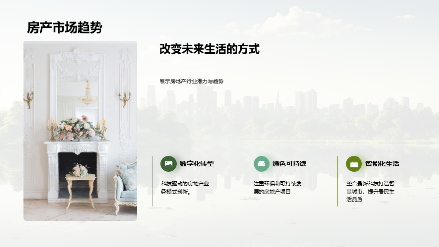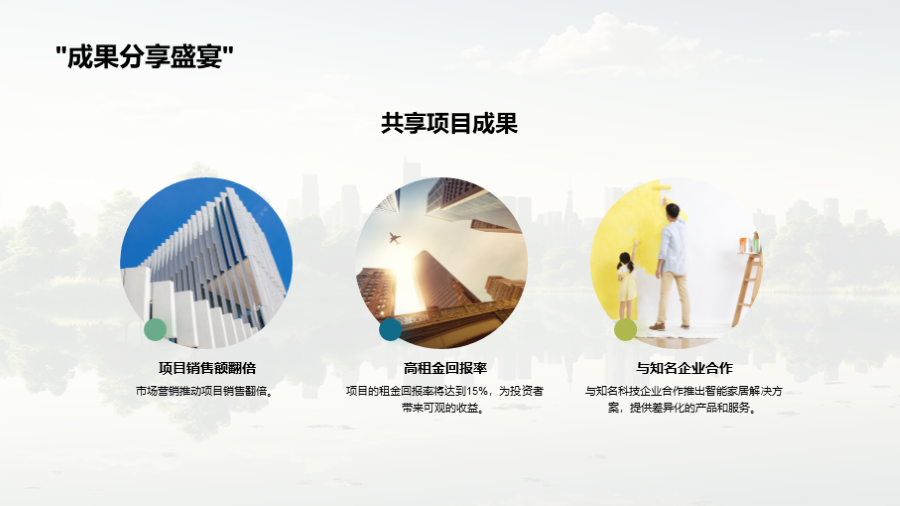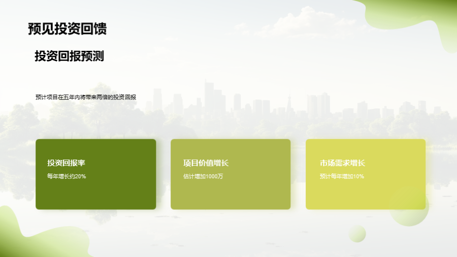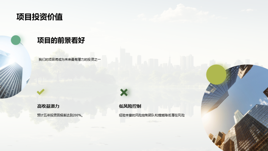 房地产行业的潜力和趋势, 公司的历史和成功案例, 公司的核心团队成员介绍, 未来我们计划建设一座绿色环保的智慧城市, 我们的项目将结合最新的科技进行建设,以提升住户的生活品质, 我们预计项目在五年内将带来两倍的投资回报, 我们有经验丰富的风 文件大小:7.86 MB 页数:33 页 分辨率:16*9 📸 产品预览 — 1秒登录查看完整内容 — 账号登录