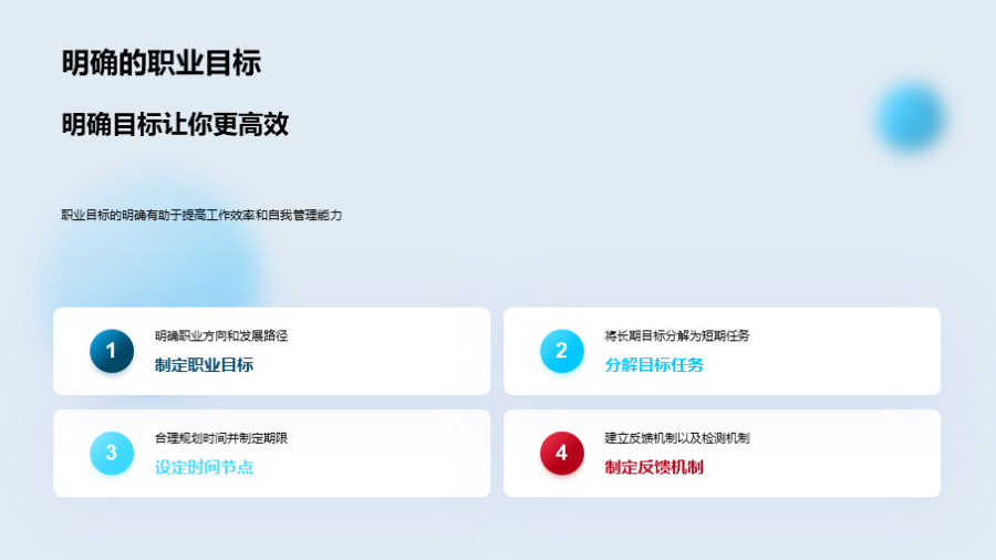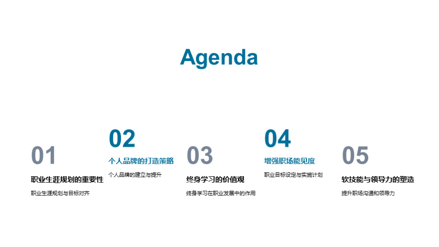 理解职业生涯规划的基本概念, 探索职业规划对未来成功的长期影响, 明确个人发展目标与公司目标的对齐, 个人品牌的定义及其重要性, 建立专业形象和在线声誉的途径, 利用社交媒体和网络平台提升个人品牌, 终身学习对职业发展的积极作用, 如何在工 文件大小:2.48 MB 页数:23 页 分辨率:16*9 📸 产品预览 — 1秒登录查看完整内容 — 账号登录