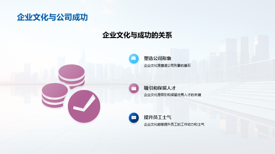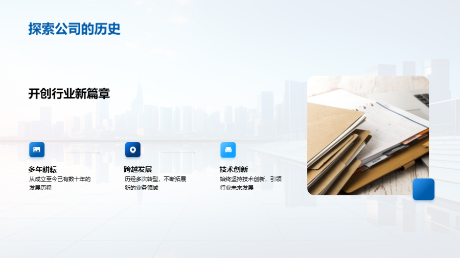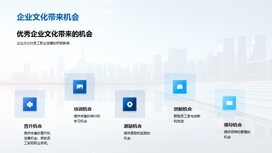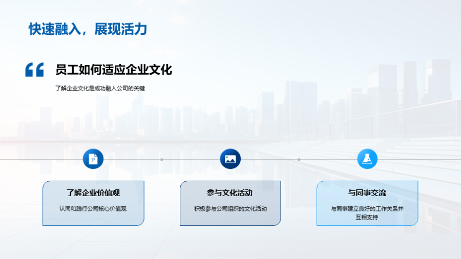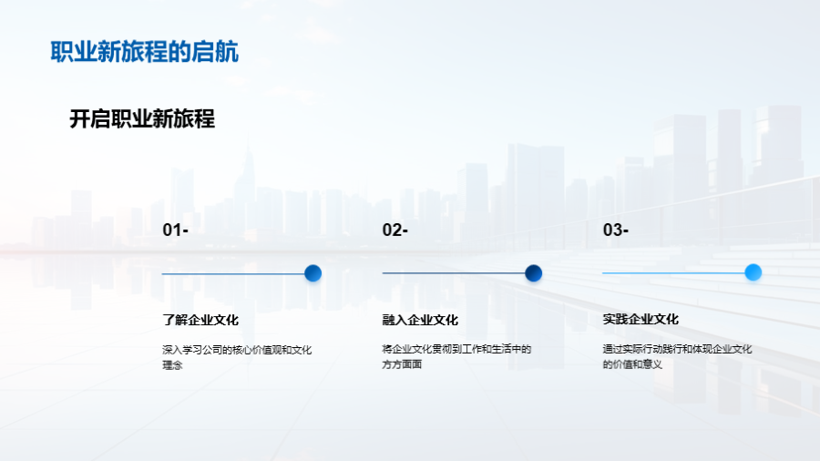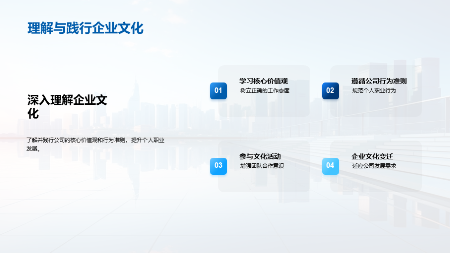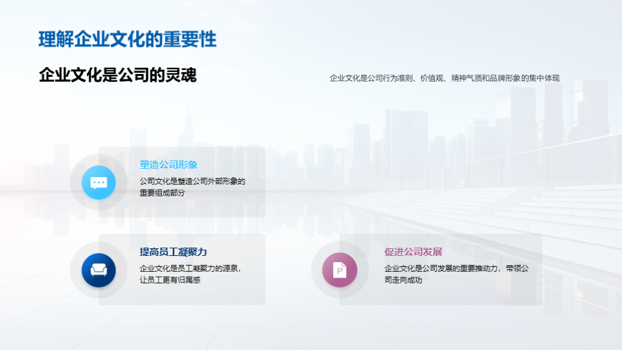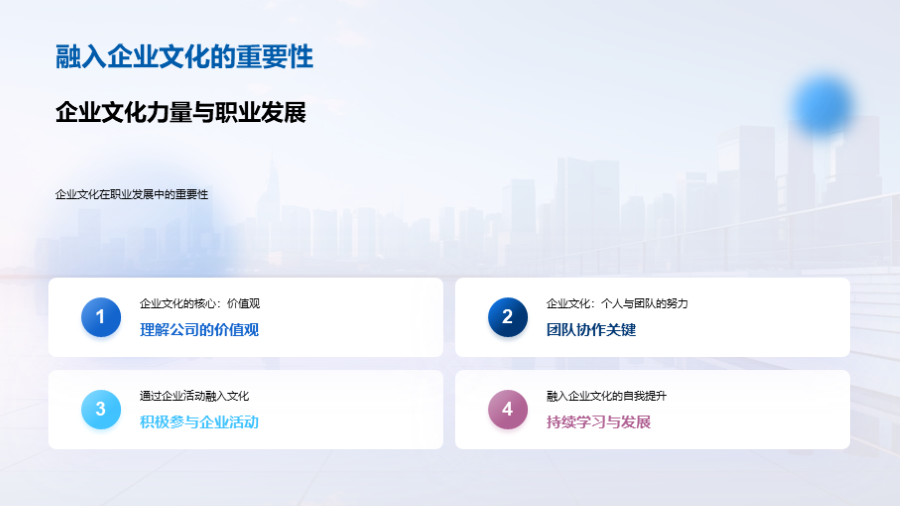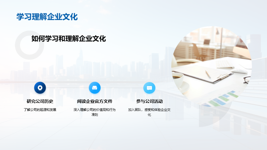 公司的历史和发展, 公司的企业文化理念, 企业文化与公司成功的关系, 企业文化对员工行为的影响, 企业文化对员工职业发展的作用, 优秀的企业文化带来的职业机会, 企业文化的导向性, 企业文化为我们提供的成长环境, 如何利用企业文化推动个人职 文件大小:2.47 MB 页数:33 页 分辨率:16*9 📸 产品预览 — 1秒登录查看完整内容 — 账号登录