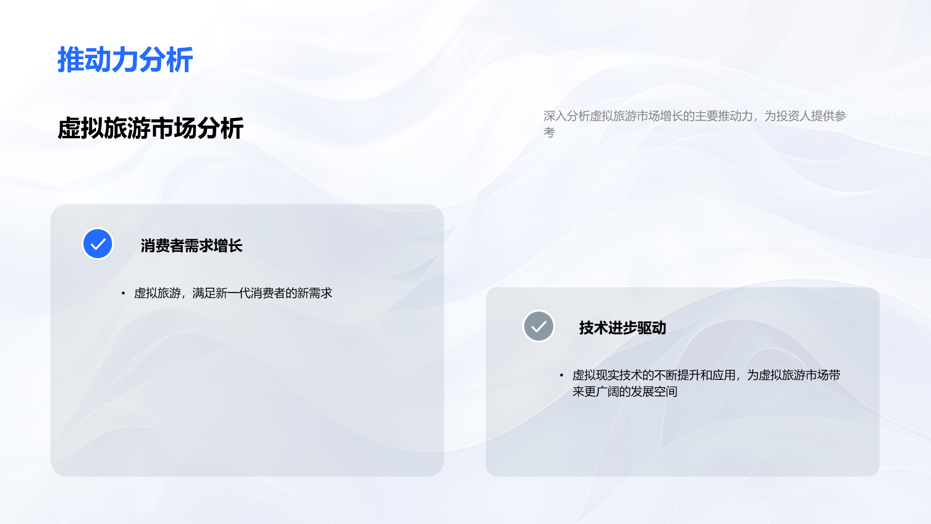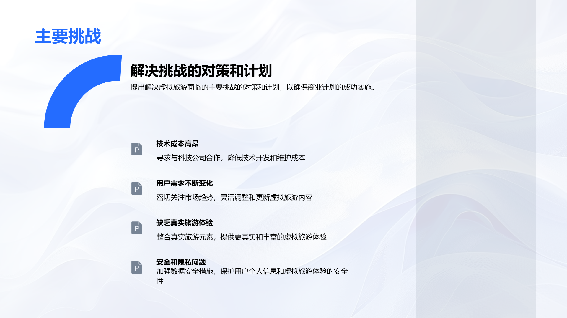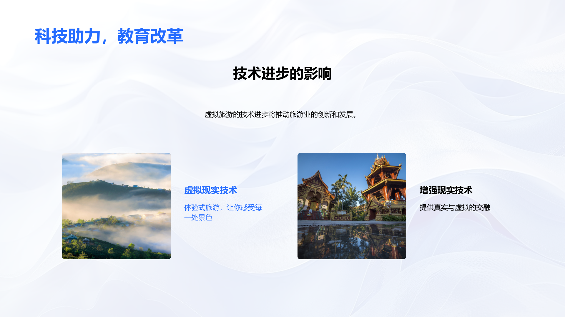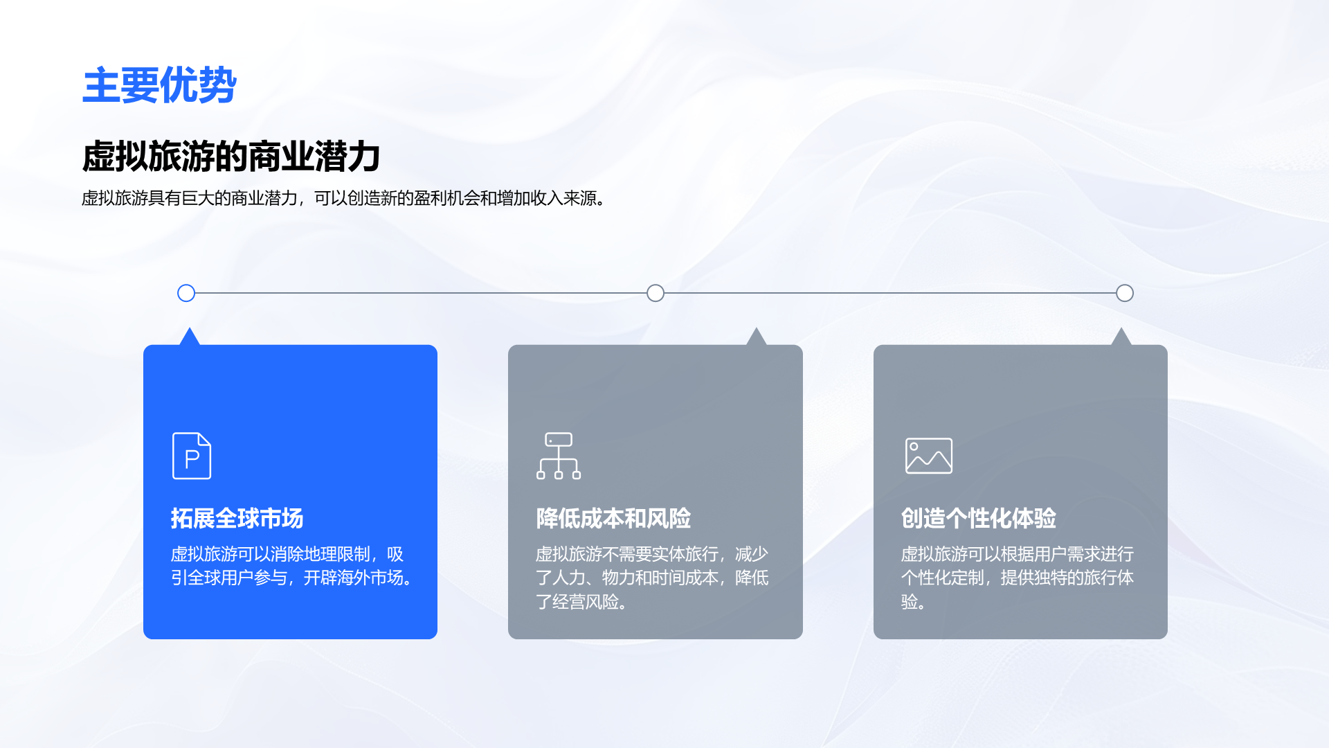 简述虚拟旅游的基本概念, 展示虚拟旅游的各种形式, 详述虚拟现实技术如何改变旅游体验, 解析当前虚拟旅游的市场需求, 阐述虚拟旅游未来10年的市场预测, 说明明显的增长趋势及其推动力, 详述虚拟旅游的主要优势, 剖析虚拟旅游面临的主要挑战, 文件大小:6.34 MB 页数:26 页 分辨率:16*9 📸 产品预览 — 1秒登录查看完整内容 — 账号登录
