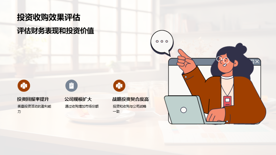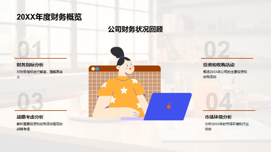 总结20XX年公司的财务表现和财务状况, 详细解析重要的财务指标和它们的意义, 对比前一年的财务表现,以描绘成长情况, 概览20XX年公司的主要投资和收购活动, 解析这些活动背后的战略考虑, 评估投资和收购对公司长期财务状况的影响, 分析2 文件大小:8.02 MB 页数:32 页 分辨率:16*9 📸 产品预览 — 1秒登录查看完整内容 — 账号登录