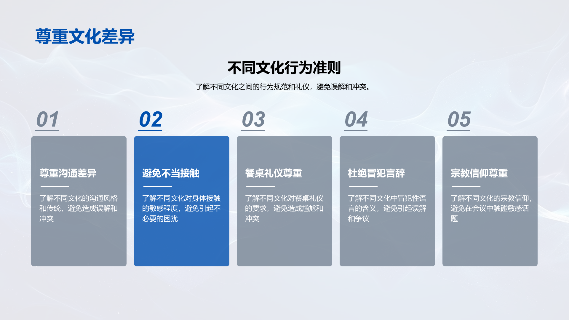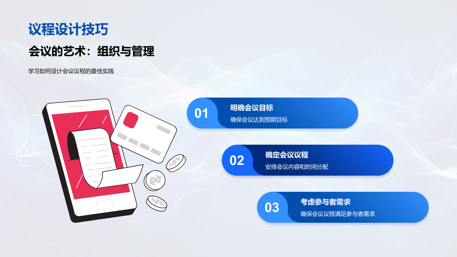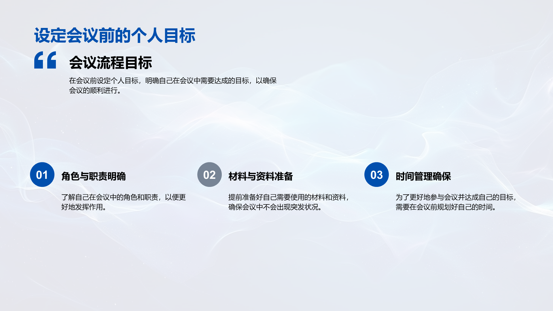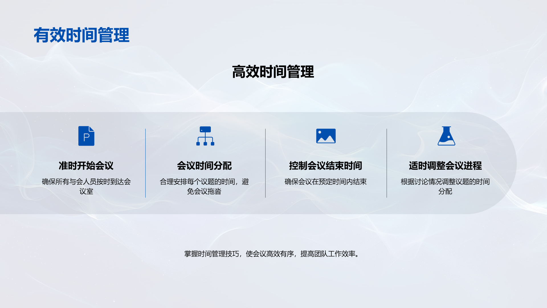 定义高效会议的标准, 关键角色和职责概述, 设计会议议程的最佳实践, 时间管理:开始、进行和结束, 积极倾听与有效沟通, 表达清晰与礼貌待人, 适时提出建设性意见, 处理异议和冲突的策略, 理解全球会议礼仪的重要性, 尊重不同文化的行为准则 文件大小:3.24 MB 页数:28 页 分辨率:16*9 📸 产品预览 — 1秒登录查看完整内容 — 账号登录